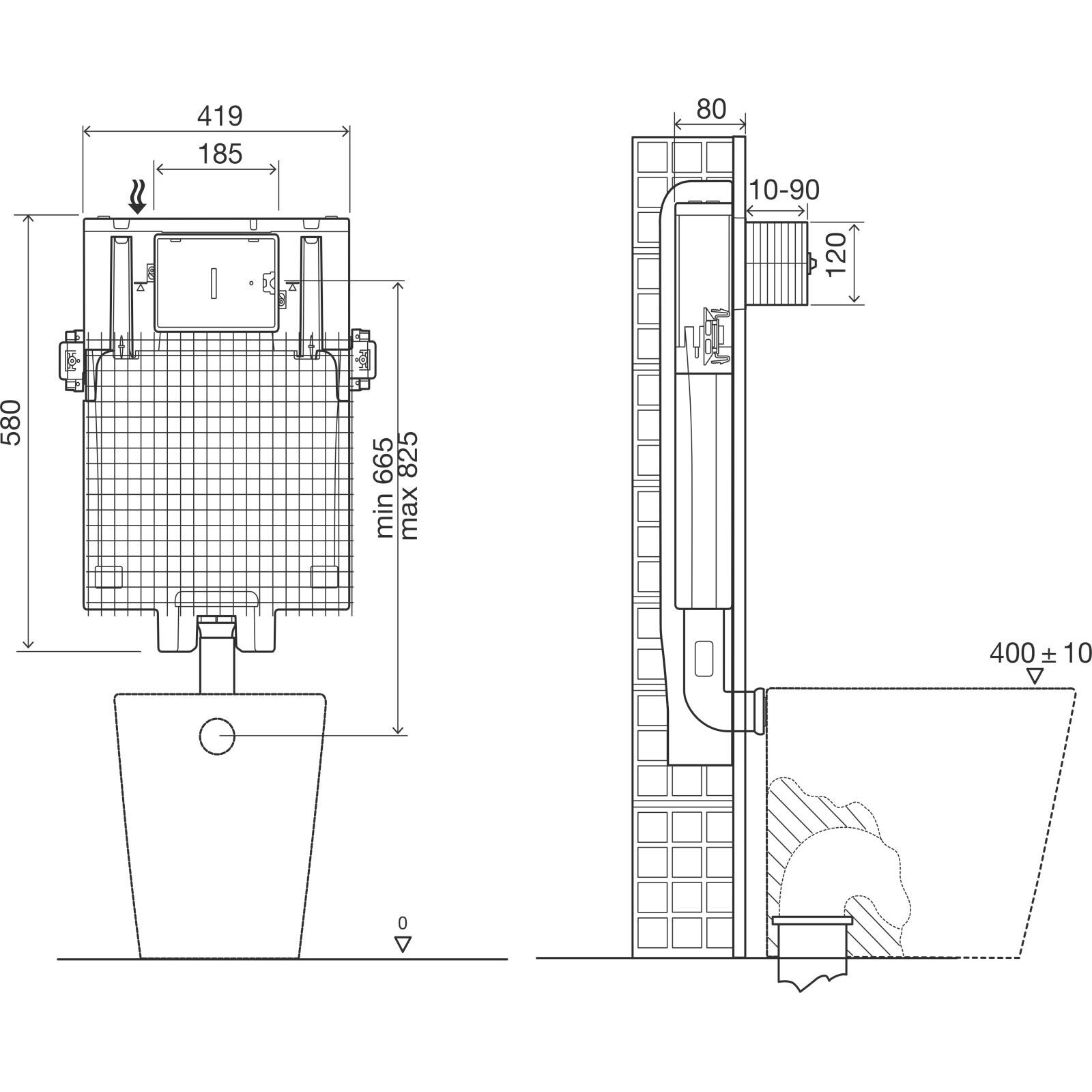 OLI80 DIRECT - ця система зритого монтажу буде відмінним вибором при установці бачка в несучу стіну, облицьовану цеглою в комплекті з унітазом для підлоги.