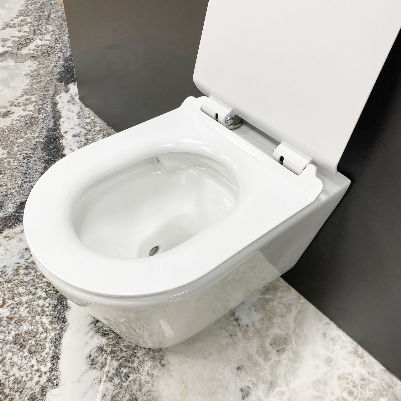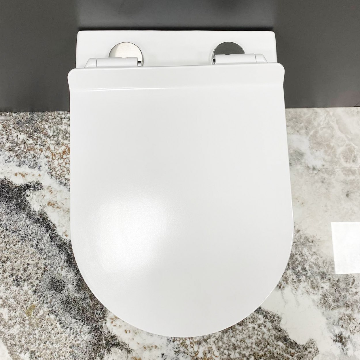 - Soft-close система, яка зупиняє швидке та раптове падіння, ефективно усуває проблему захлопування сидіння та мінімізує шум, забезпечуючи плавне та безшумне закриття унітазу.