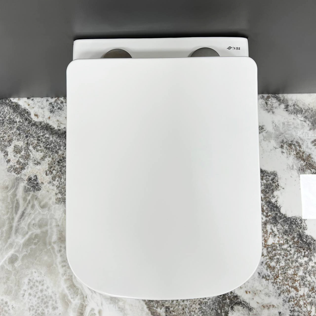 Унітази бренду VBI виготовлені з кераміки найвищої якості, що відрізняється стійкістю до іржі, хімічних речовин та високими гігієнічними властивостями. Сучасна система, в якій всі елементи кріплення приховані - полегшує прибирання та покращує естетику виробу та приміщення. Технологія Rimless дозволяє точно розподілити воду всередині унітазу, що сприяє ефективному змиву. Soft-close система, яка зупиняє швидке та раптове падіння, ефективно усуває проблему захлопування сидіння та мінімізує шум, забезпечуючи плавне та безшумне закриття унітазу. Глянець відбиває світло, створюючи враження збільшення та яскравості. Використання інсталяції прихованого монтажу - дає можливість повісити унітаз. Таким чином, ми отримуємо сучасний дизайн, збільшуємо простір та полегшуємо утримання ванної кімнати в чистоті.