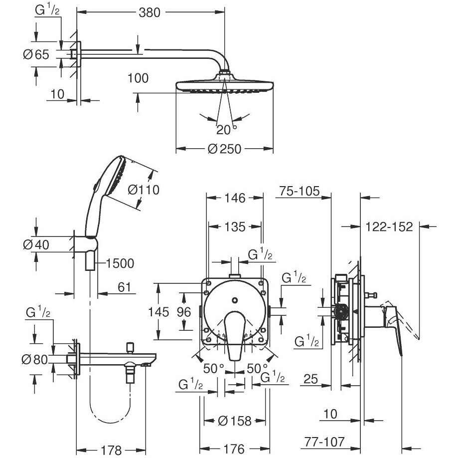 - універсальна частина, що вбудовується GROHE Rapido SmartBox, 1/2" (35 604)