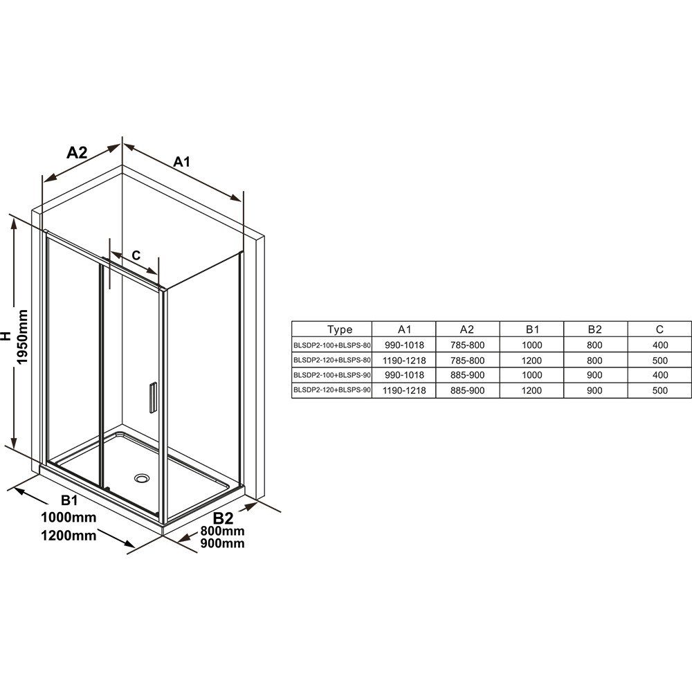 Душевая кабина состоит из двух отдельных изделий: душевой двери (BLSDP2 100) и фиксированной панели (BLSPS 80). В комплект поставки входят 2 опорные полосы с коротким экраном. Изделие предназначено для установки в облицованном плиткой углу ванной комнаты на душевых поддонах Ravak Gigant, Gigant Pro, Gigant Pro Chrome или непосредственно на полу со встроенным душевым каналом или точечным сливом.