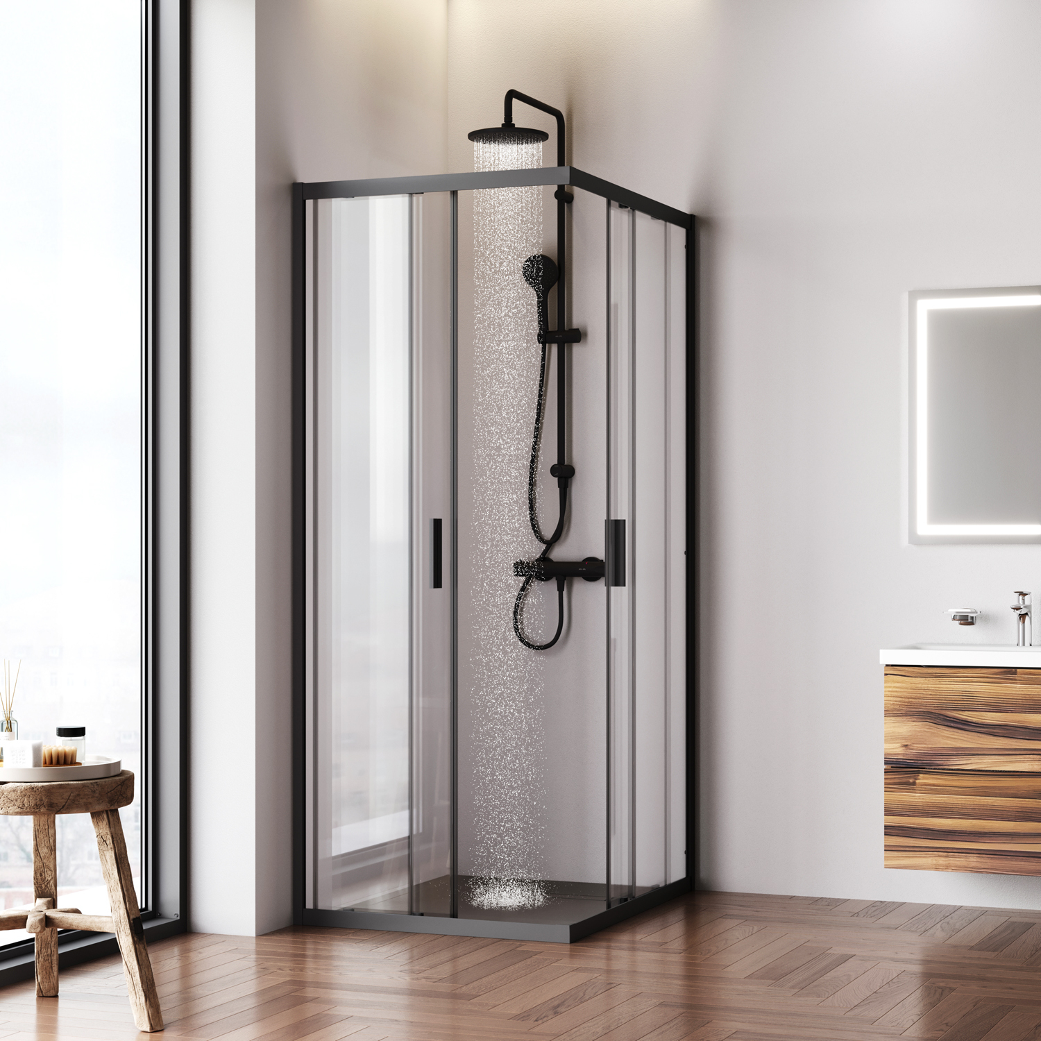 Душова огорожа виконана з ударостійкого загартованого скла. Товщина фіксованого скла 5 мм, товщина скла дверей 6 мм. Профілі огорожі виготовлені з надійного алюмінію з преміальним анодованим покриттям. Анодування забезпечує рівномірний насичений колір і особливу стійкість до механічних пошкоджень.