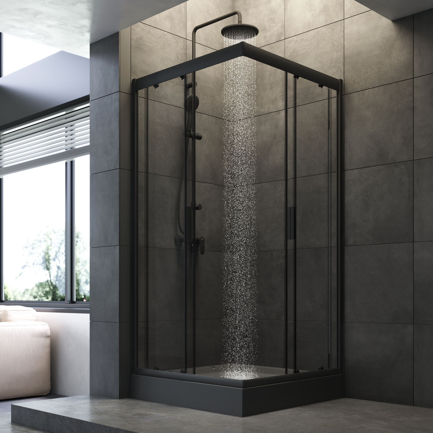 Душова огорожа виконана з ударостійкого загартованого скла. Товщина фіксованого скла 5 мм, товщина скла дверей 6 мм. Профілі огорожі виготовлені з надійного алюмінію з преміальним анодованим покриттям. Анодування забезпечує рівномірний насичений колір і особливу стійкість до механічних пошкоджень.