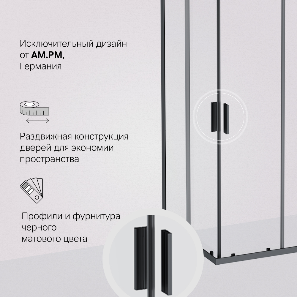Душова огорожа Gem – легка функціональна конструкція для стильного оформлення душової зони у ванній кімнаті. Лаконічний дизайн і чітко вивірені пропорції від власного бюро AM.PM Design. Оптимальне рішення для будь-якої ванної кімнати. Значна висота профілю 2000 мм з турботою про людей високого зросту. А розсувні двері дозволяють заощадити простір у приміщенні.