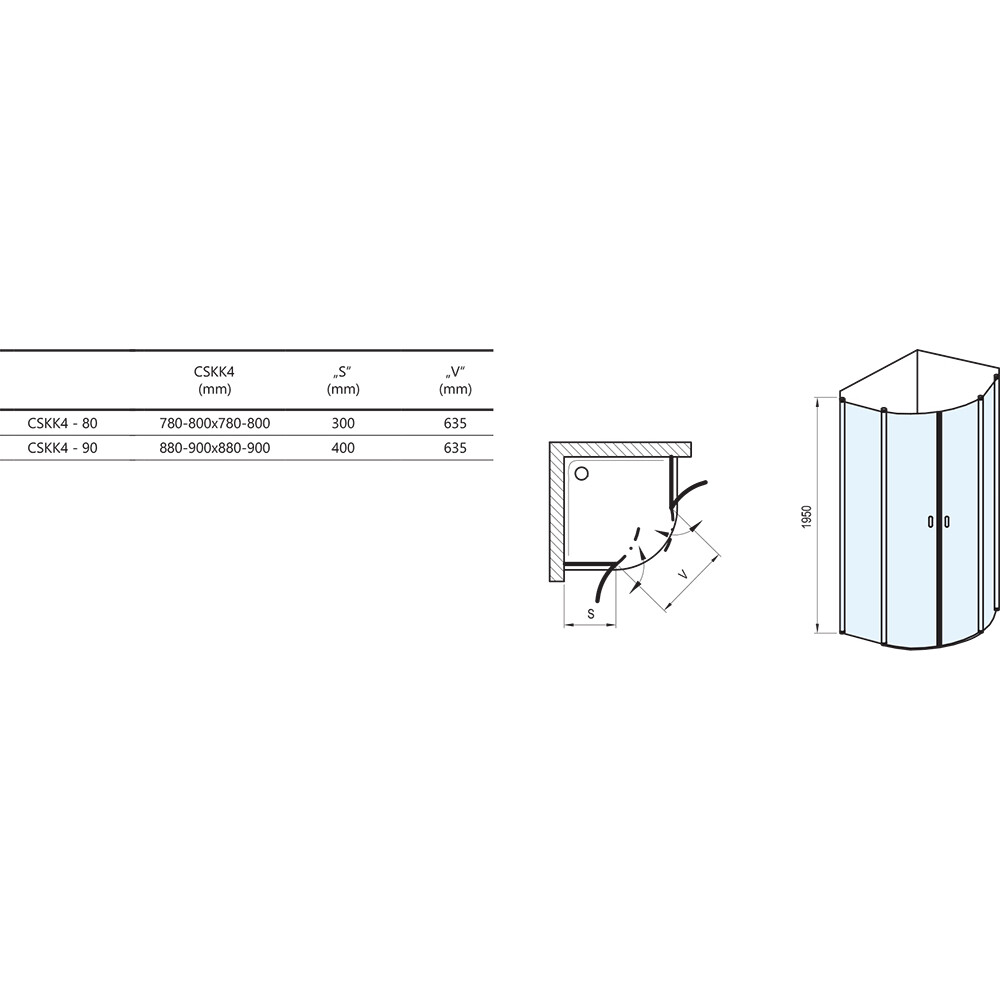 Виріб призначений для установки в облицьованому куточку ванної кімнати на литих душових піддонах Ravak Elipso Pro, Elipso Pro Chrome, Elipso Pro Flat або безпосередньо на підлозі з вбудованим душовим каналом або точковим зливом. У комплекті з виробом йдуть 2 металеві кронштейни. Радіус 500 мм.