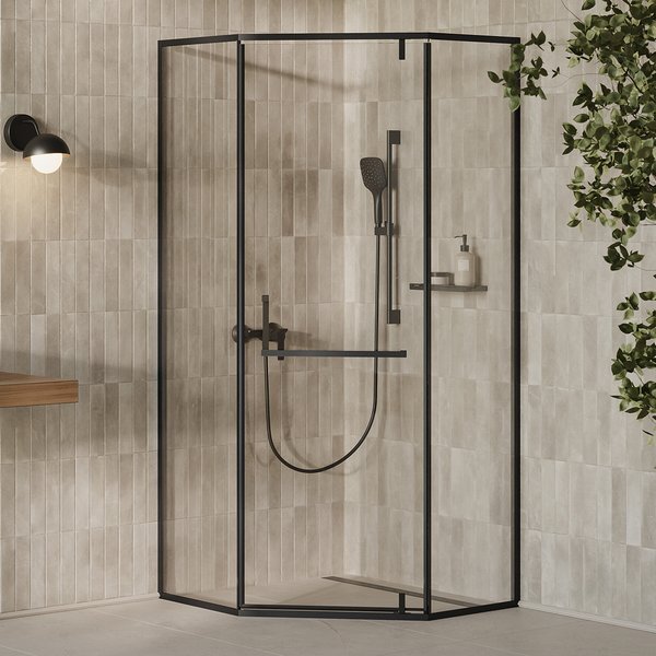 Простий і швидкий монтаж (збір душового куточка не вимагає використання інструментів, збирається за допомогою засувок, для встановлення необхідно закріпити тільки профіль до стіни). Виріб складається з двох нерухомих прямих частин та двох вигнутих частин у вигляді розсувних дверей. Монтується в фанерованому кутку ванної кімнати безпосередньо на підлогу з вбудованим душовим каналом або трапом.