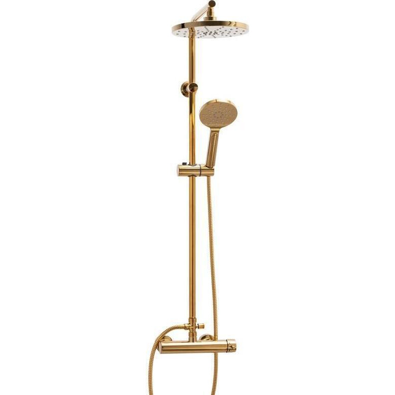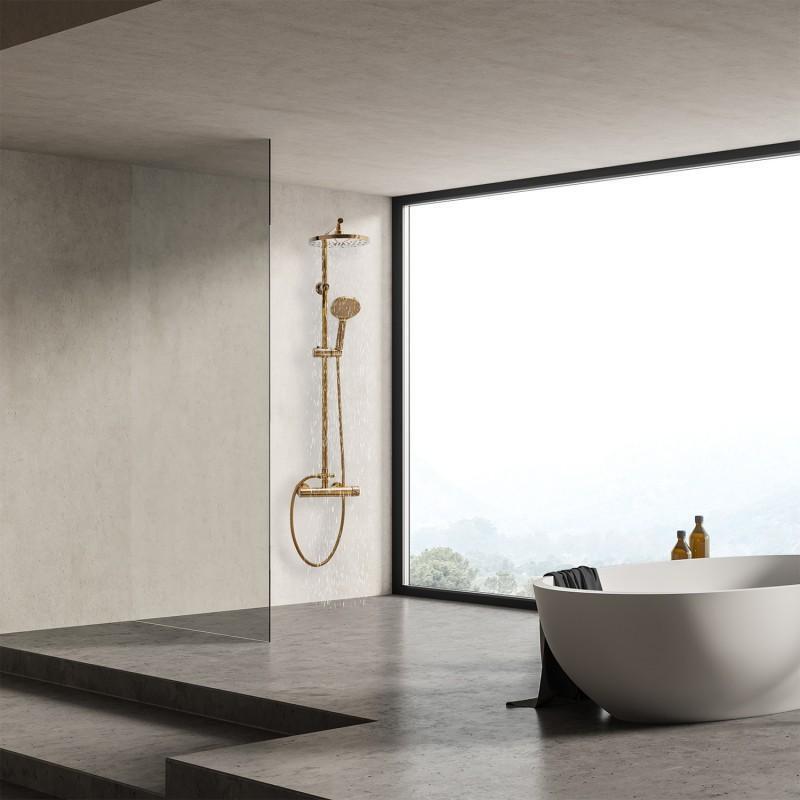 У комплект входить механічний змішувач для душу з регулюванням потоку та змішувачем температури води, а також душова колонка з гарним тропічним душем діаметром 23 см та перемикачем напору струменя між нею та трубкою. Насадка для душу з іншого боку оснащена двома режимами струменя води, які можна перемикати за допомогою перемикача на ручці.