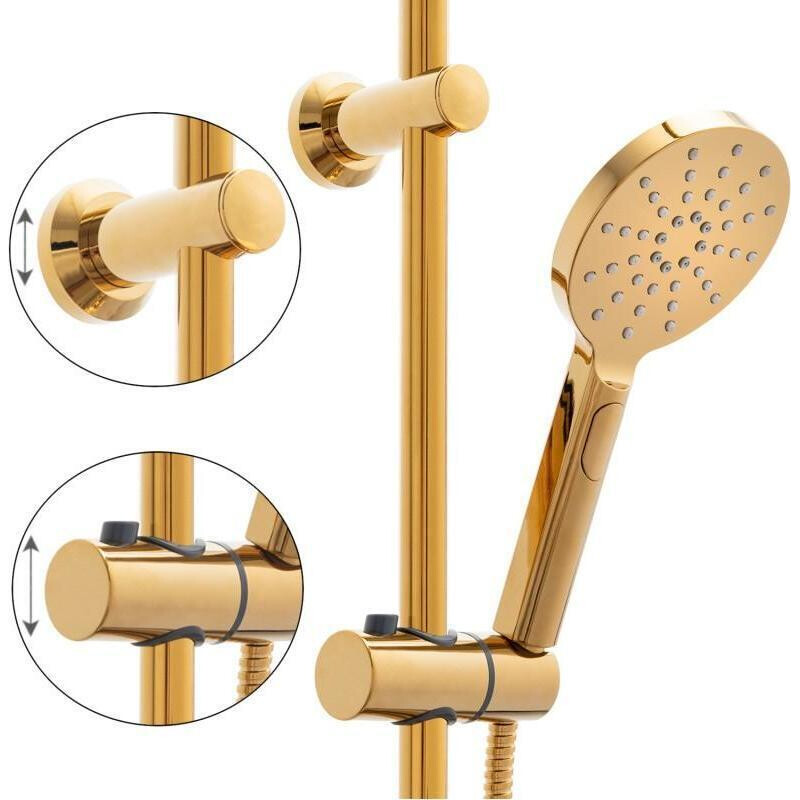 Керамічна головка батареї (35 мм) гарантує довговічність та міцність. У тропічний душ та ручний душ вбудована найновіша система захисту від вапняного нальоту ANTI-CALC. Дизайн набору відповідає останнім тенденціям, а його золотистий колір зробить його прикрасою ванної кімнати.