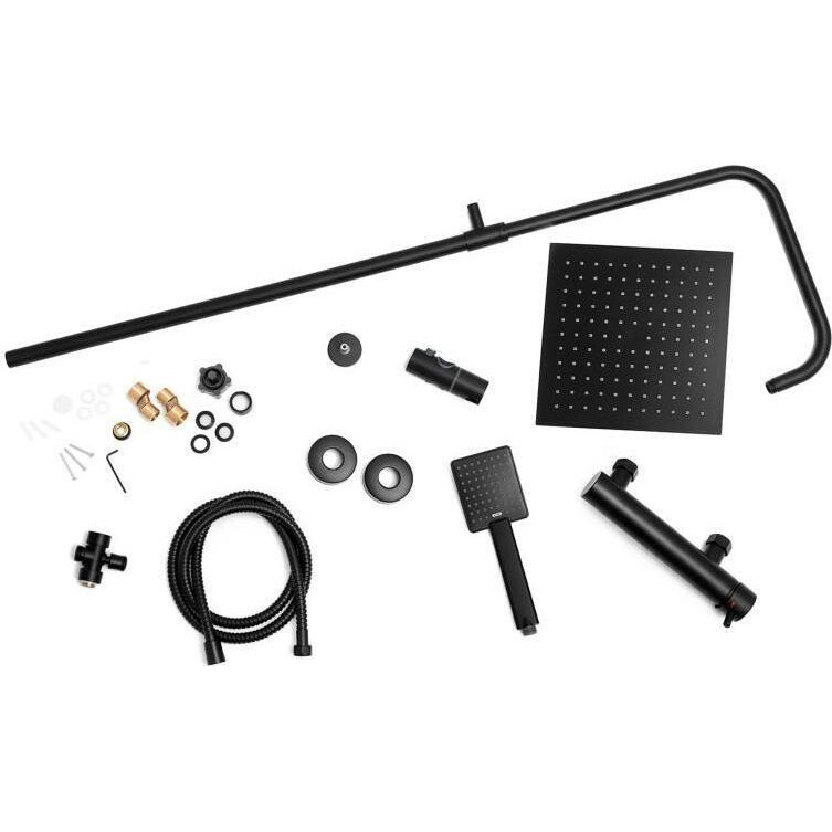 У комплект входить механічний змішувач для душу з регулюванням потоку та змішувачем температури, а також перемикач струменя напірної води між тропічним душем та трубкою. В комплект входить стильний тропічний душ SLIM 25 x 25 см та матова чорна душова лійка із сучасною системою ANTI-CALC. Дизайн набору відповідає останнім тенденціям – він виглядає дуже елегантно та чудово вписується у сучасну ванну кімнату.