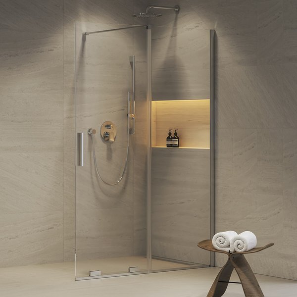 Roll ROWI Wall пропонує елегантне рішення із відкритим входом з одного боку. Гладка поверхня міцного загартованого скла у поєднанні з непомітними елементами посилення надає ванній кімнаті повітряного та стильного вигляду. Краса у простоті.