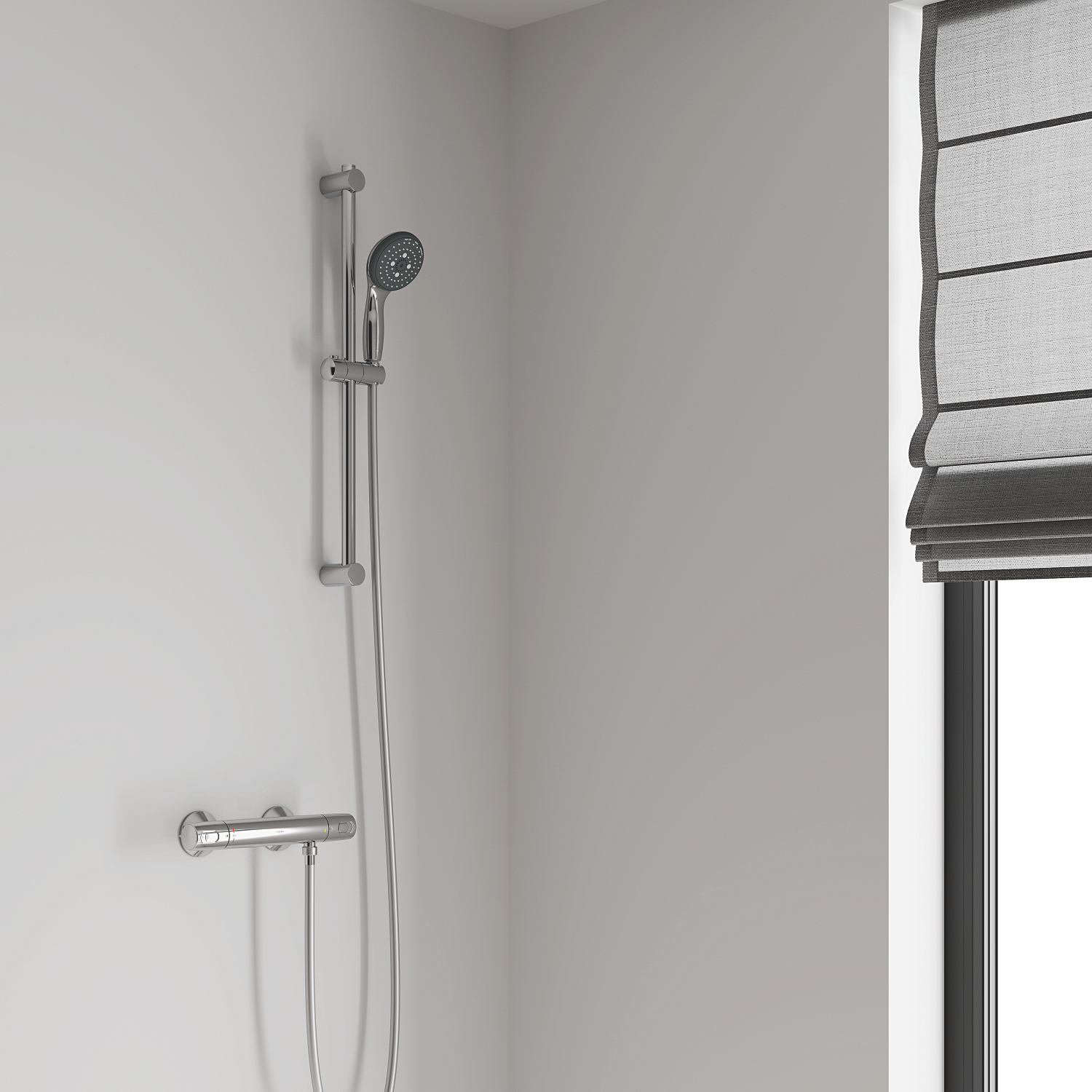 - GROHE FastFixation (регульована відстань між настінними кріпленнями штанги дозволяє використовувати для монтажу уже наявні у стіні отвори)