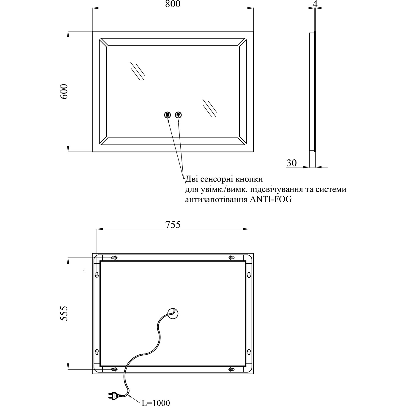 - ANTI-FOG – вбудована система захисту від запотівання, завдяки якій дзеркало залишається чистим навіть після гарячого душу.