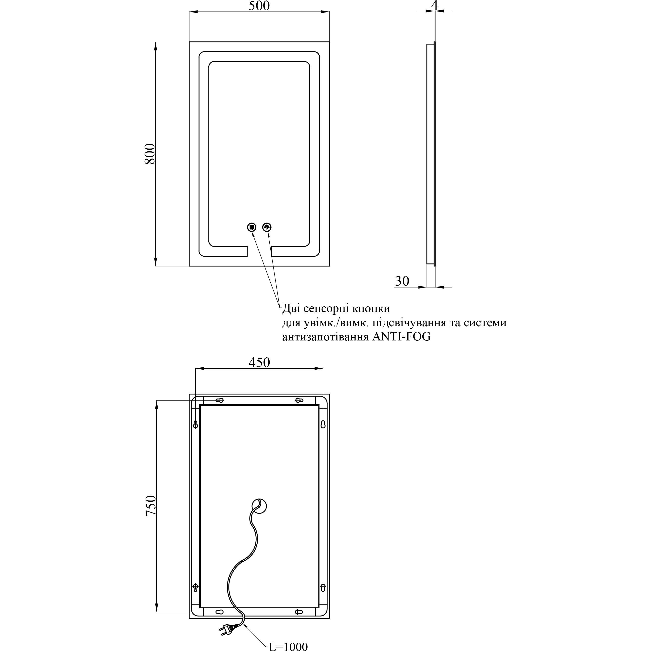 - ANTI-FOG – вбудована система захисту від запотівання, завдяки якій дзеркало залишається чистим навіть після гарячого душу.