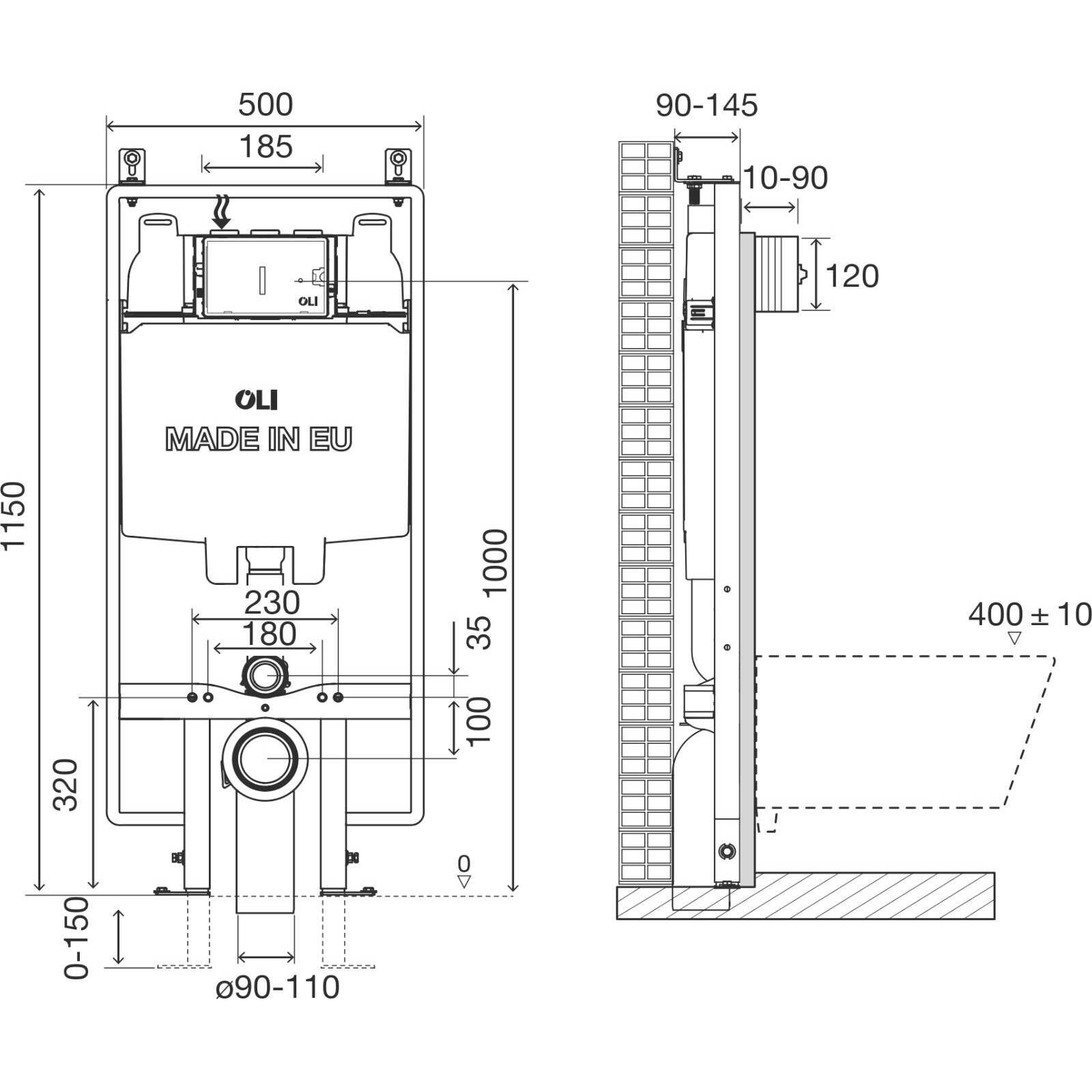 Інсталяція OLI74 Plus S90 Sanitarblock представляє одне з найкращих рішень для ванних кімнат для встановлення підвісних унітазів у несучі або легкі стіни. S90 означає, що бачок має глибину 90 мм, що ідеально підходить для тонких стінок.