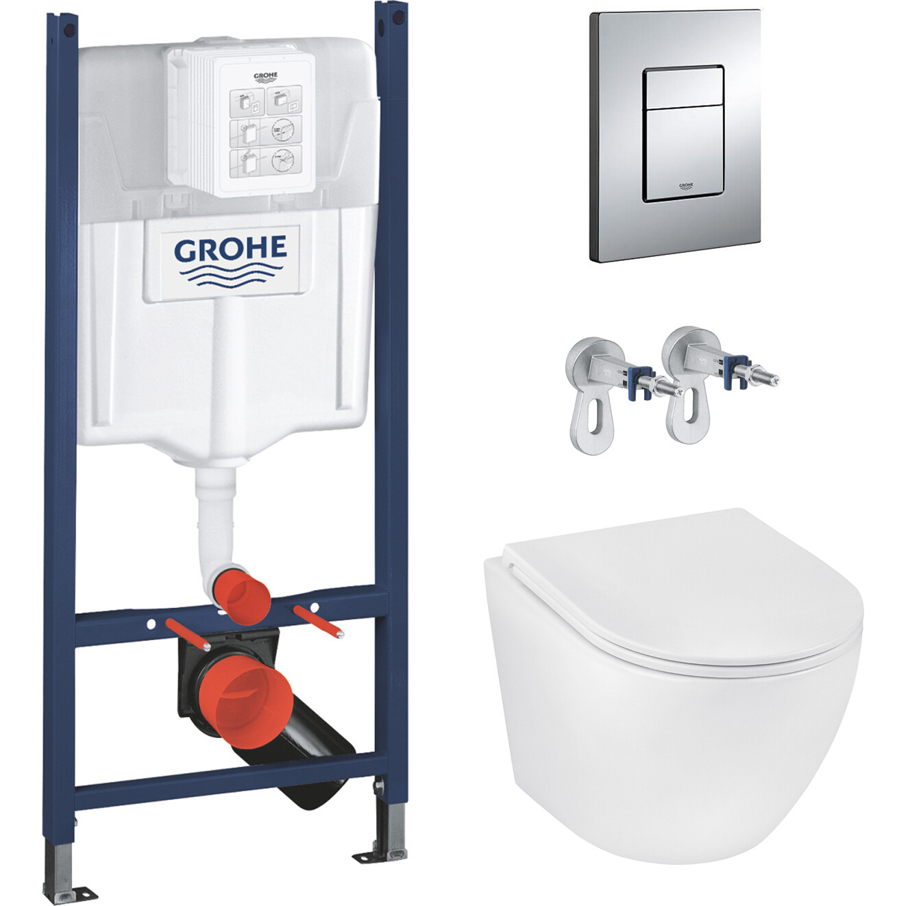 Комплект 4 в 1: Інсталяція GROHE Solido 3 в 1 3884966Q + Унітаз безободковий Kroner Harz WHI493736 RIMLESS із сидінням Slim Duroplast/Soft-close/ Quick relase KH493736WHIR