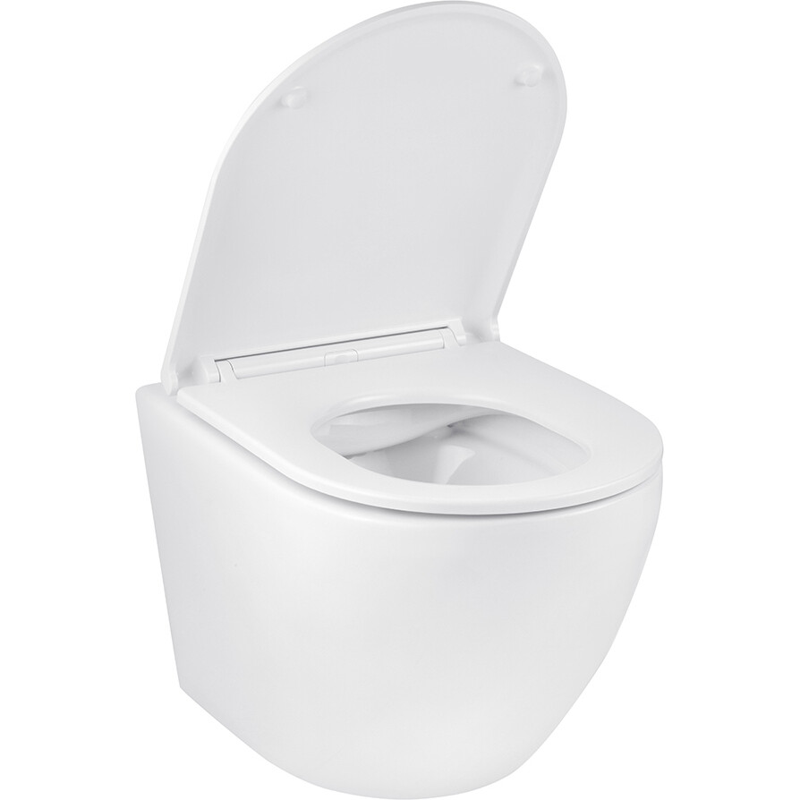 - Безободкова конструкція Rimless мінімізує накопичення забруднень і значно спрощує догляд, гарантуючи високий рівень гігієнічності.