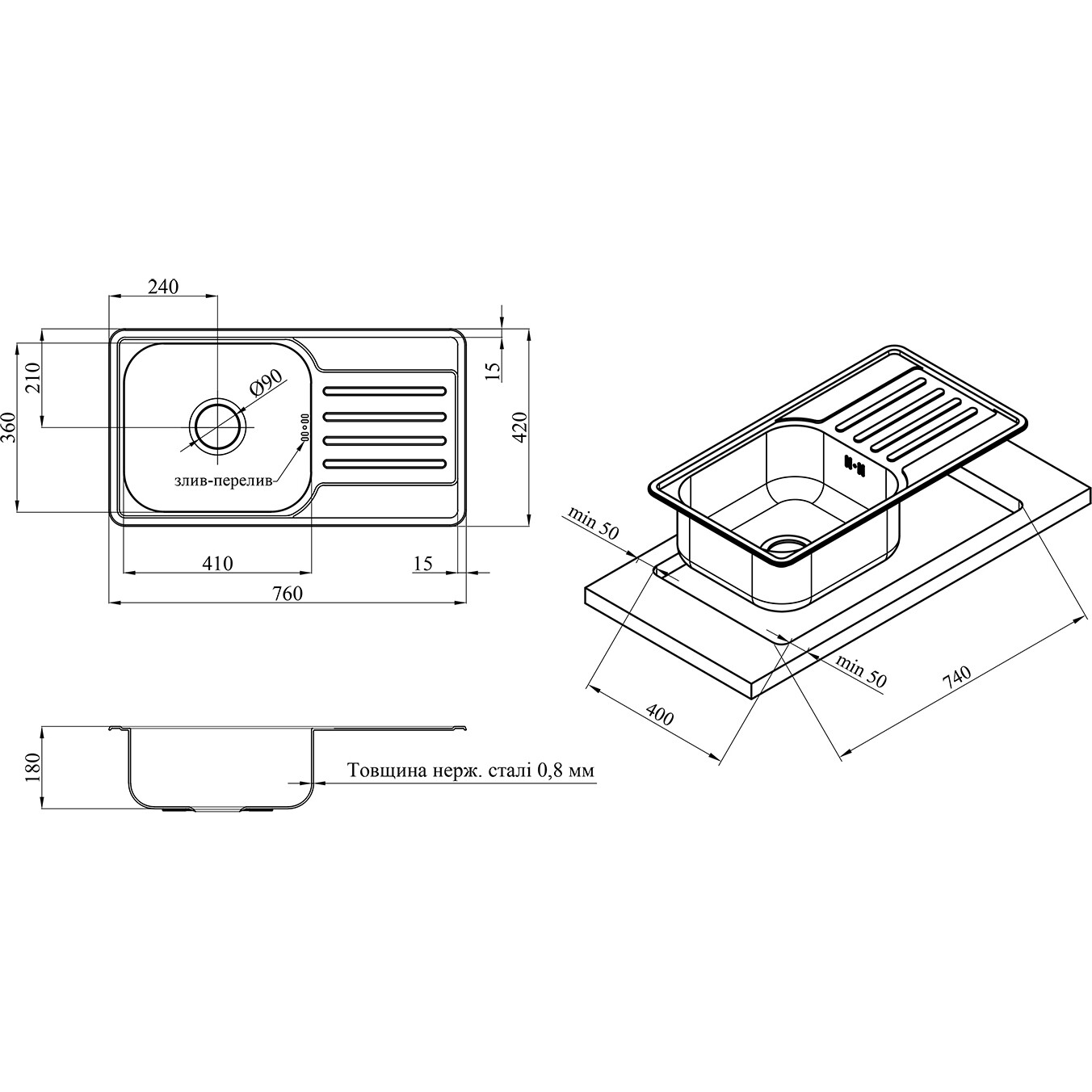 Кухонна мийка Kroner KRP Satin – 7642 (0,8 мм) – ідеальне рішення для сучасної кухні. Миття виконане у вигляді прямокутної чаші з крилом для посуду, монтується врізним способом. Виготовлена з високоякісної нержавіючої сталі, що забезпечує тривалий термін служби та легке чищення. Функціональне, надійне та естетично привабливе миття від Kroner стане незамінним помічником у приготуванні та прикрасою вашої кухні.