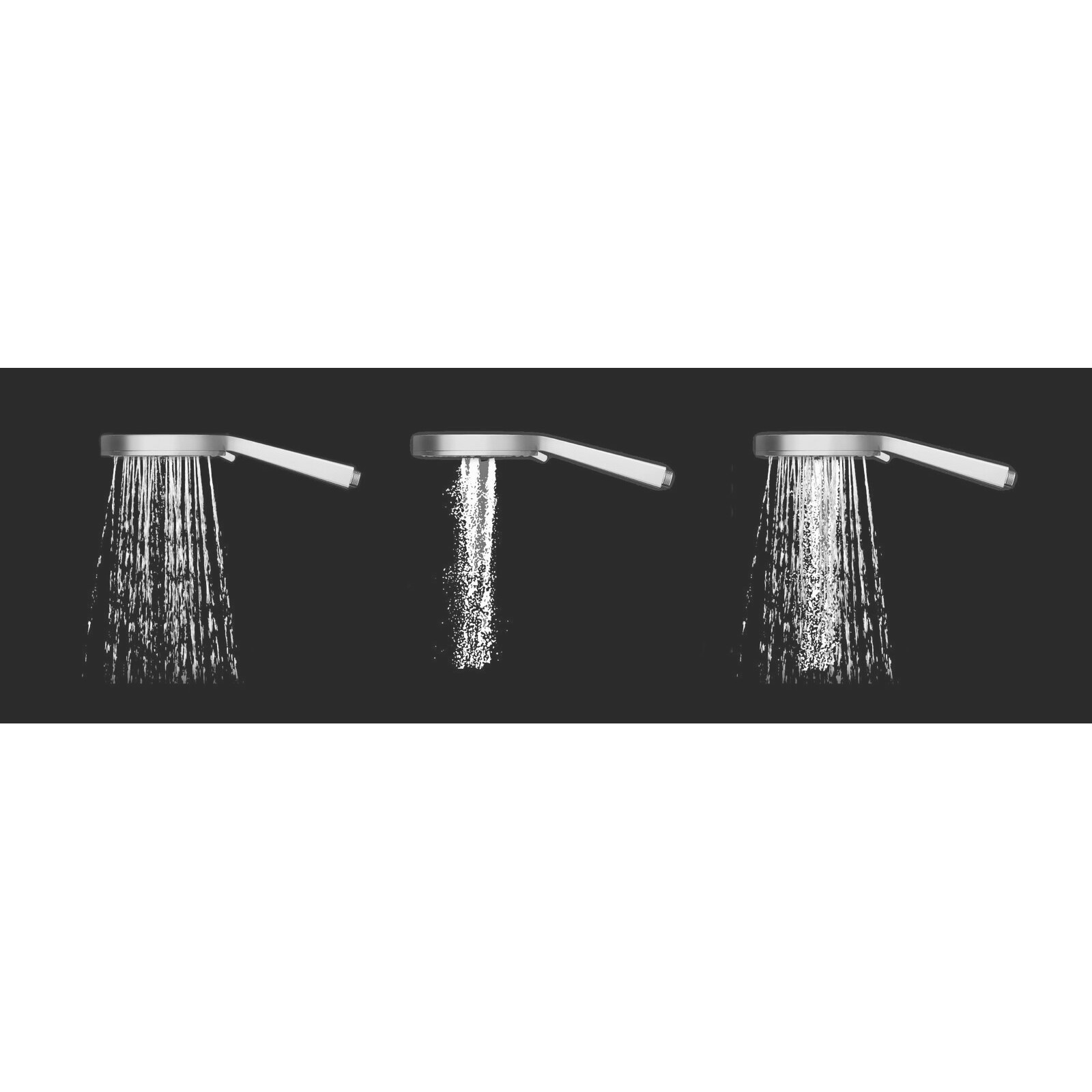 Найбільший ручний душ у нашому портфоліо Flat XXL. Режим Rain нагадує літній дощ і надає заспокійливу дію на шкіру. Функція Jet забезпечує сильний потік від центру голови, що інтенсивно стимулює кровообіг у шкірі. Він також підходить для прибирання важкодоступних місць у ванній кімнаті. Третя функція поєднує у собі дві попередні.