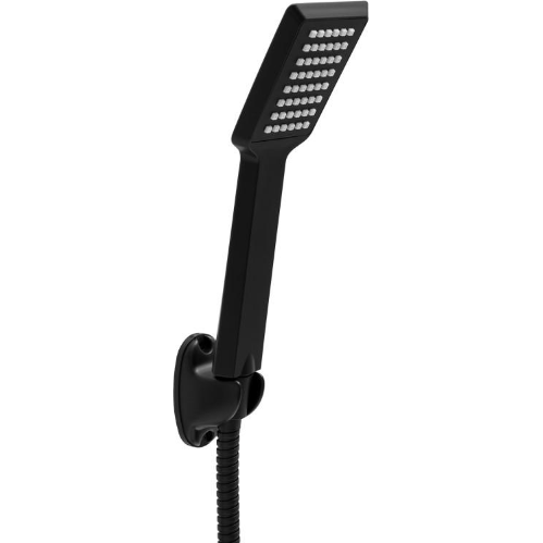Однофункціональна душова лійка у комплекті зі шлангом та настінним кронштейном. Виготовлений із міцного та міцного пластику, покритого порошковою фарбою чорного кольору.
