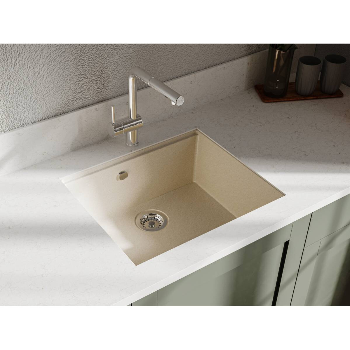 Світла прямокутна кухонна мийка з кварцового піску LAGOON 540 кольору жасмин – класична модель, яка підійде для кухонь у різних стилях. У ній зручно мити тарілки та каструлі, листя та сковорідки. Мийка має кілька типів монтажу – врізна та під стільницю.