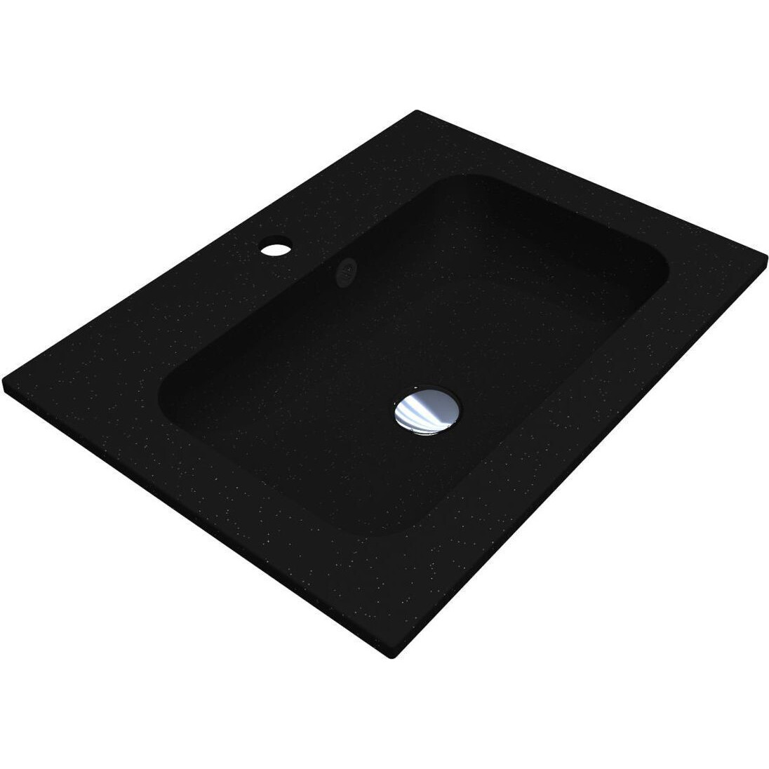 Чорний компактний умивальник із кварцового піску DELLA 600 із прямокутною чашею – оптимальне рішення для маленької ванної кімнати. Має отвори під змішувач та перелив. Раковина може бути накладена на тумбу, що також має на увазі врізний спосіб монтажу.