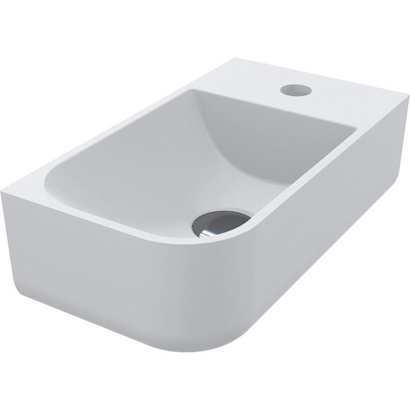 Компактний матовий умивальник із литого мармуру KO L – ідеальний варіант для маленької ванної кімнати. Незважаючи на невеликий розмір, містка чаша та закруглений зовнішній кут забезпечують функціональність та елегантність моделі. Має підвісний чи накладний тип монтажу.