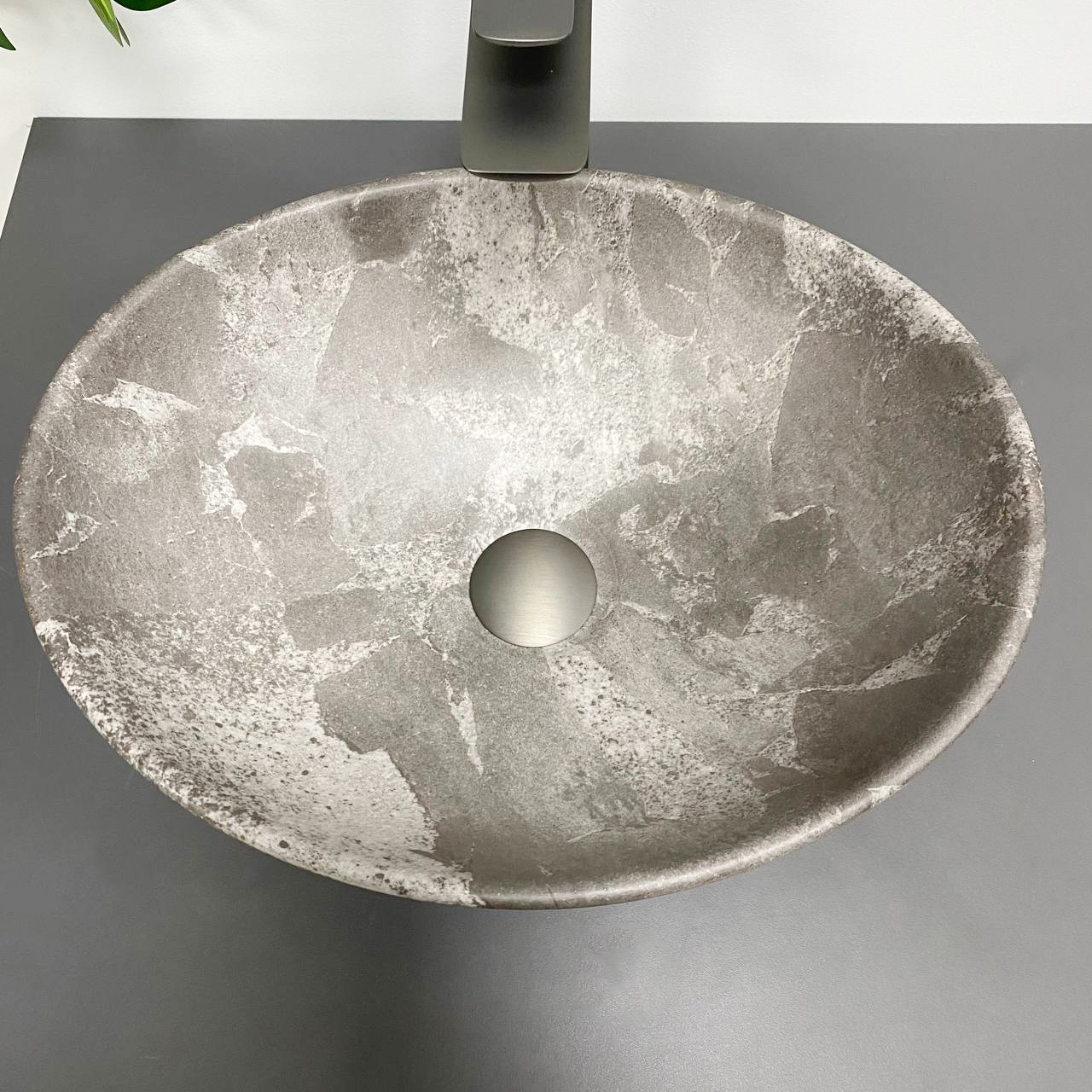 Накладні раковини серії VBI PARMA користуються популярністю та пропонуються у різних кольорах із глянсовим або матовим покриттям. Умивальник має класичний та сучасний дизайн з овальною формою. Особливістю моделі PARMA є широкий вибір візерунків, що імітують різні види мармуру від ніжних світлих відтінків до насичених зелених та чорних кольорів, включаючи білі глянцеві варіанти.