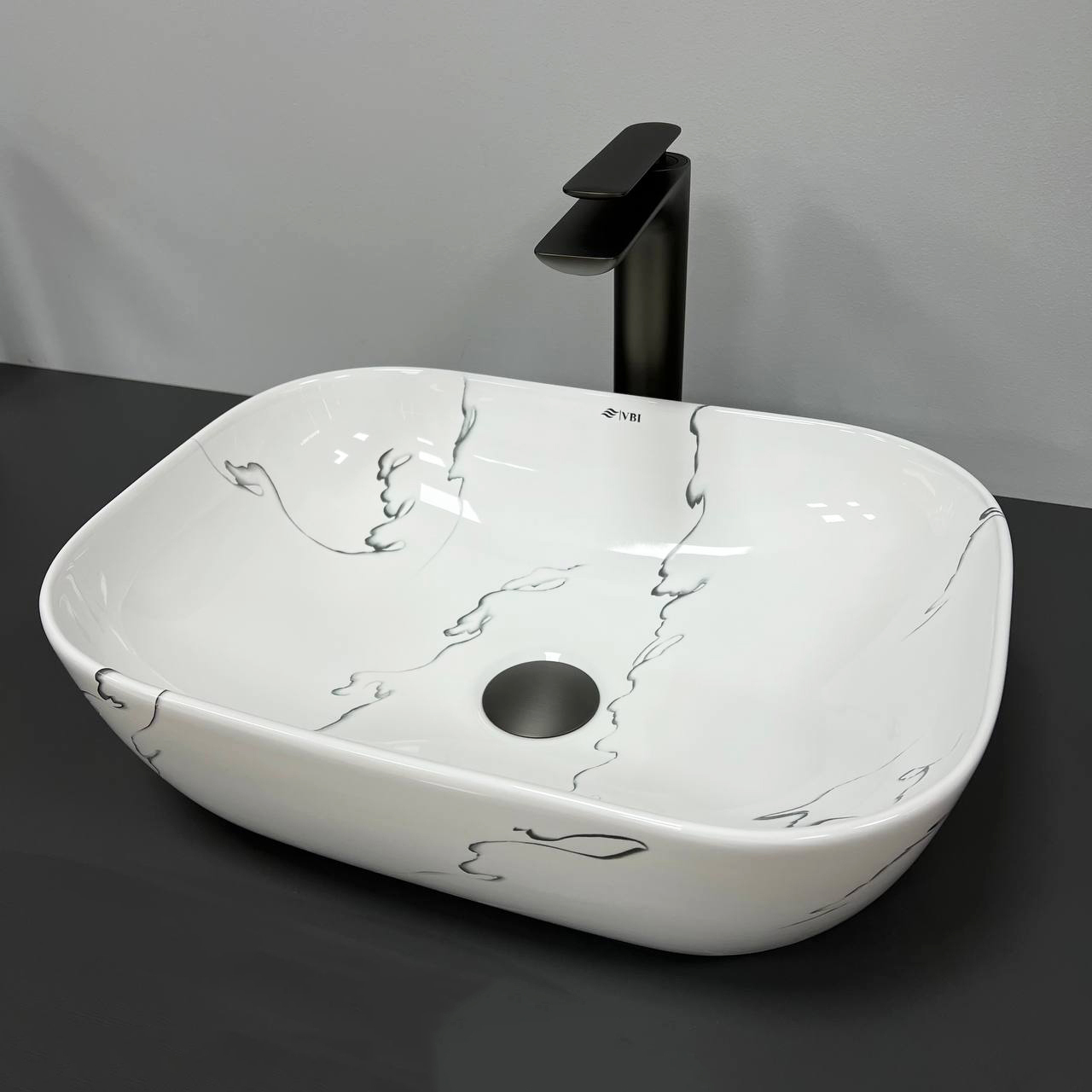 Накладна раковина Ravenna відрізняється мінімальним силуетом та ідеальними пропорціями. Геометрична прямокутна форма пом'якшена витонченими заокругленнями, що надає їй легкість.