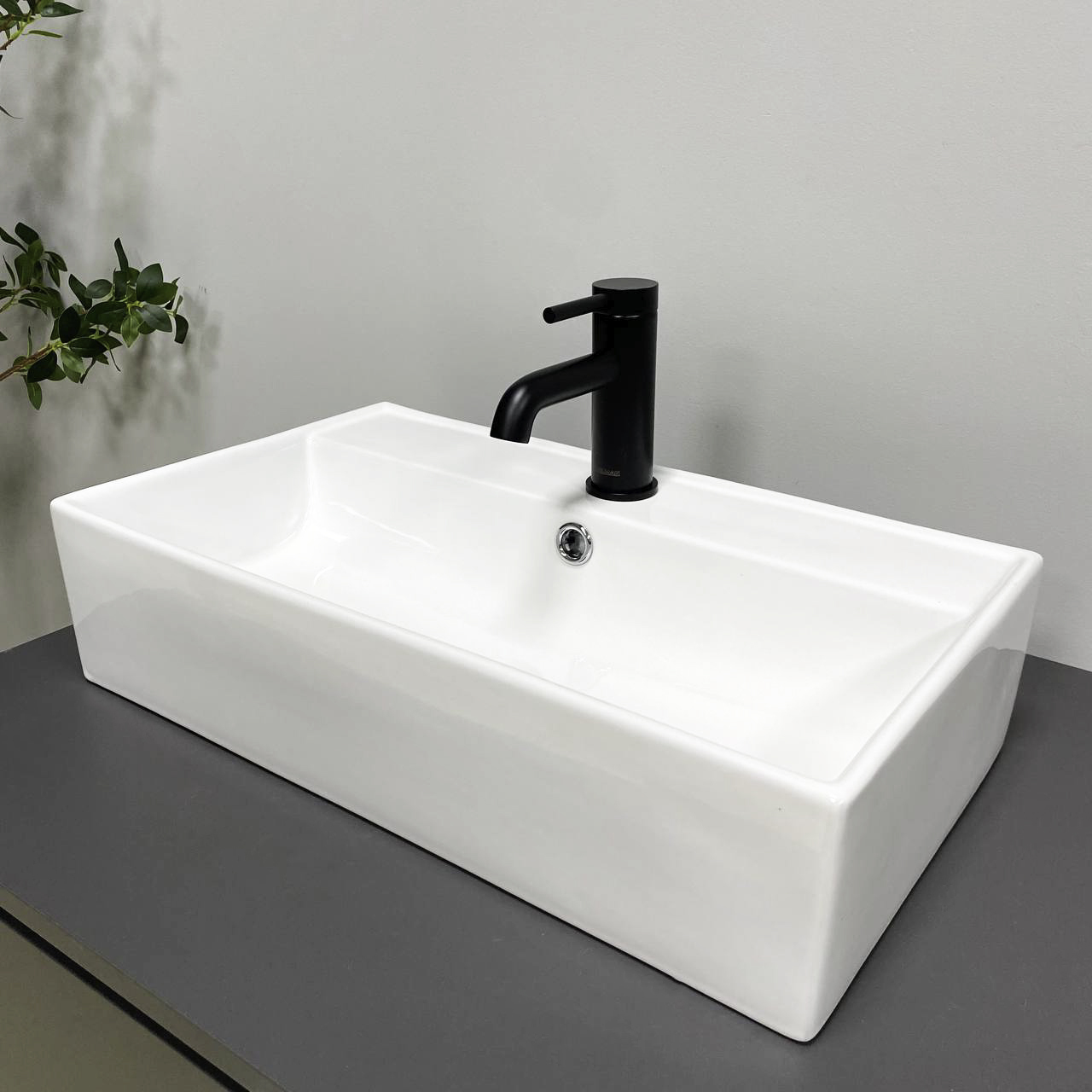 VBI TAVERNOLA - накладна за способом встановлення раковина, має отвір для змішувача, що дозволяє заощадити дорогоцінний простір у ванній кімнаті. Раковина має квадратну форму із чіткими прямими лініями. Це дозволяє підібрати змішувачі як круглої, так і квадратної форми.