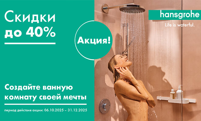 Скидки до 40% на смесители, душевые системы и аксессуары для ванной комнаты.