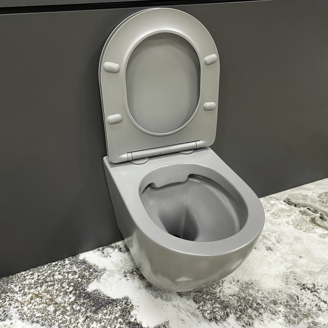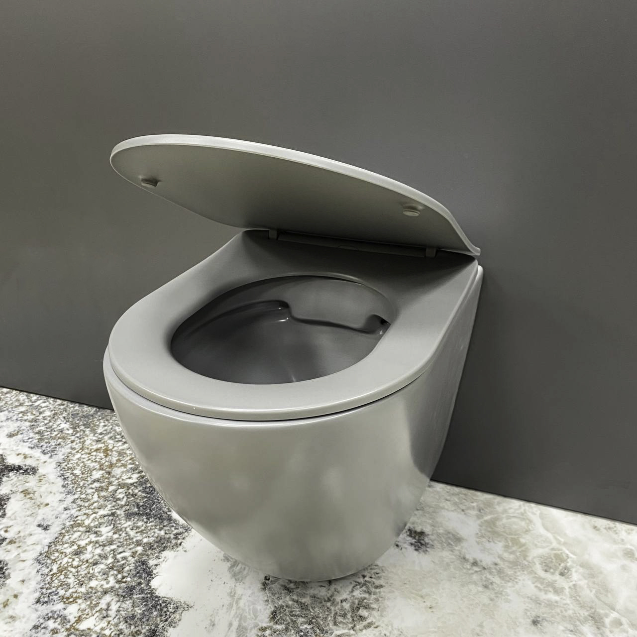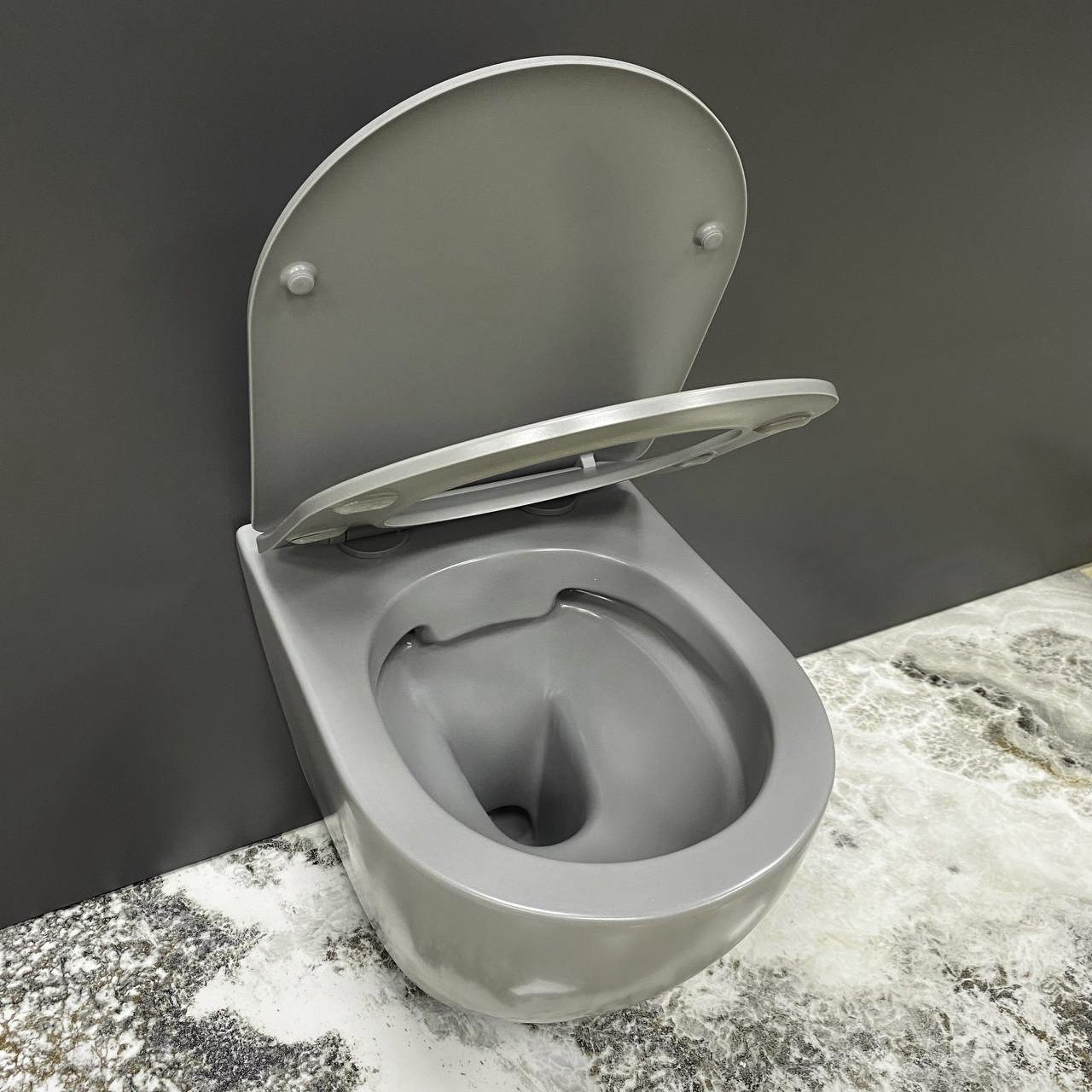 Купить Безободковый подвесной унитаз VBI Vulcano Light Grey Matt VBI-020416 (светло-серый матовый, с сиденьем) со скидкой в комплекте с биде.