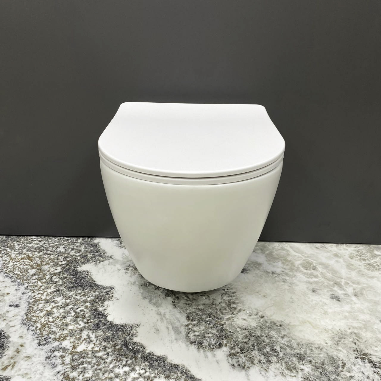 Купить Безободковый подвесной унитаз VBI Vulcano White Matt VBI-020415 (белый матовый, с сиденьем) со скидкой в комплекте с биде.