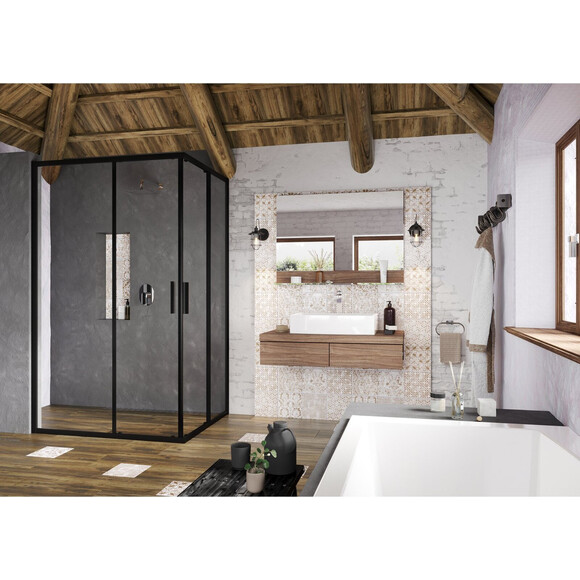 Изделие состоит из двух душевых дверей. Изделие предназначено для установки в кафельном углу ванной комнаты на душевых поддонах Ravak Perseus Pro, Perseus Pro Chrome или непосредственно на полу со встроенным душевым каналом или точечным сливом.