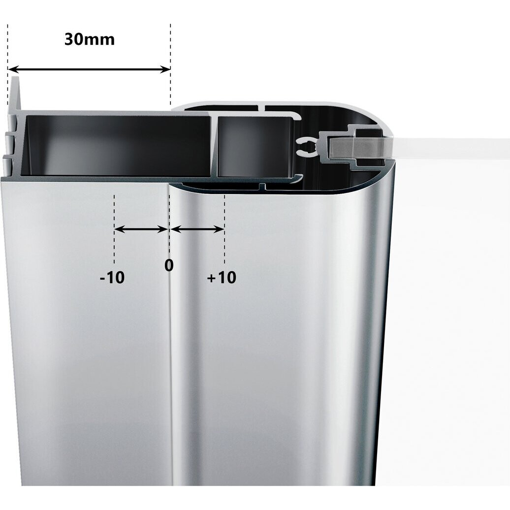Регулируемый шарнирный держатель душевых кабин Chrome имеет возможность установки под разным углом и позволяет выровнять возможные неровности стены. Идеальную герметичность душевой кабины гарантирует нижний водоотводный уплотнитель и пороговая планка высотой 10 мм.