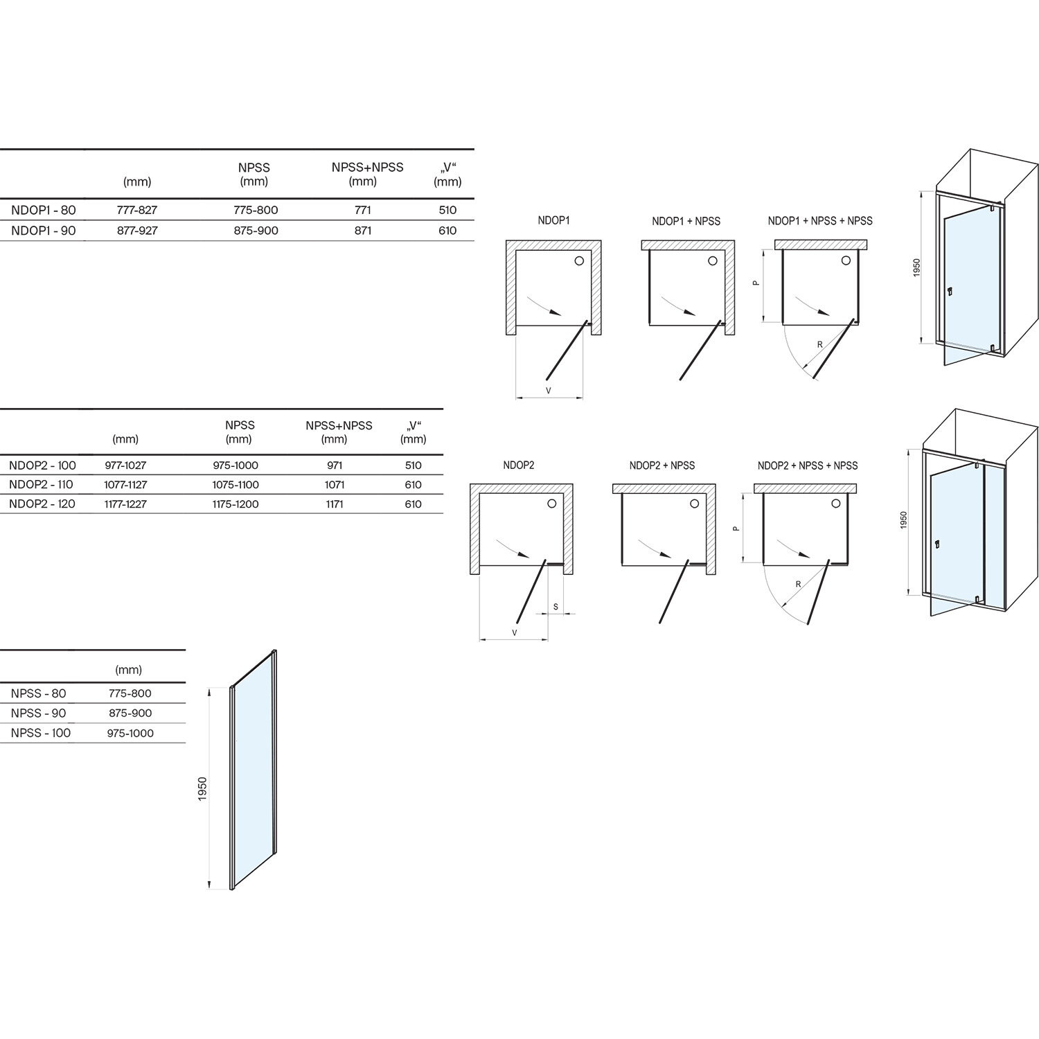 Душевая кабина Ravak Nexty NDOP1-80+NPSS-90 (03O40C00Z1+90O70C00Z1) состоит из: