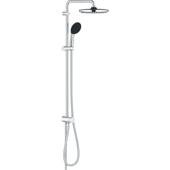 Душевая система Vitalio Comfort 250 Flex - это мгновенное совершенствование стиля и функциональности вашей ванной комнаты. Внешняя система для настенного монтажа состоит из 250-мм верхнего душа, 110-мм ручного душа, переключателя для легкого переключения между верхним и ручным душем или 2 струями верхнего душа, душевой стойки с душевым кронштейном 390 мм и скользящего элемента для регулировки ручного душа, плюс шланги 1500 мм и 500 мм. Верхний душ предлагает мягкий, расслабляющий режим Rain или SmartRain, который обеспечивает аналогичный уровень комфорта, но с пониженным потоком. Ручной душ имеет силиконовое кольцо ShockProof для защиты от падений и ударов. Он имеет 2 режима распыления: мягкий Rain и мощную Jet струю. Обоими легко управлять с помощью инновационного переключателя GROHE SmartSwitch на задней части душевой лейки. А ограничитель потока GROHE Water Saving значительно уменьшает потребление воды без ущерба для производительности и комфорта. GROHE DreamSpray гарантирует, что поток из каждой форсунки будет одинаков, что сделает ваш душ максимально комфортным и приятным. Силиконовые форсунки SpeedClean предназначены для легкого удаления известкового налета простым протиранием. Прочное и простое в уходе покрытие GROHE Long-Life сохраняет душевую систему в идеальном виде на протяжении всей жизни. Простая установка и гибкое подключение с помощью шланга длиной 500 мм делает эту систему совместимой со смесителем в вашей душевой кабине, поэтому вы можете быстро обновить ее.