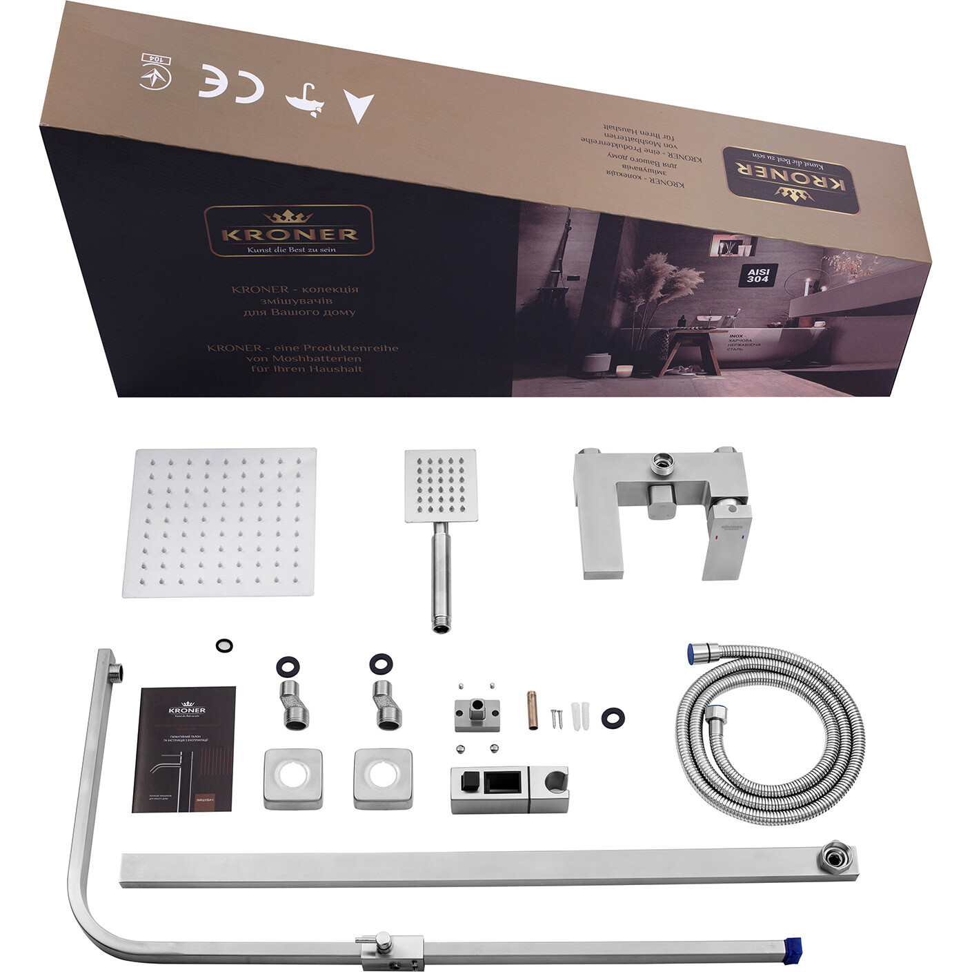 Душевая система Kroner KRP Edelstahl Kubus - ESG064 – это сочетание элегантного дизайна и функциональности. Выполненная в цвете никель, она прекрасно впишется в любой стиль ванной комнаты. Обеспечиваются два режима струи. Используя нержавеющую сталь в качестве основного материала, система отличается долговечностью и устойчивостью к коррозии. Прямоугольная форма лейки добавляет оригинальности и стильности. Поверхность системы имеет брашированный эффект, что создает приятные ощущения как на ощупь, так и на вид. Поднимите свой душевный комфорт на новый уровень с душевой системой Kroner KRP Edelstahl Kubus - ESG064.