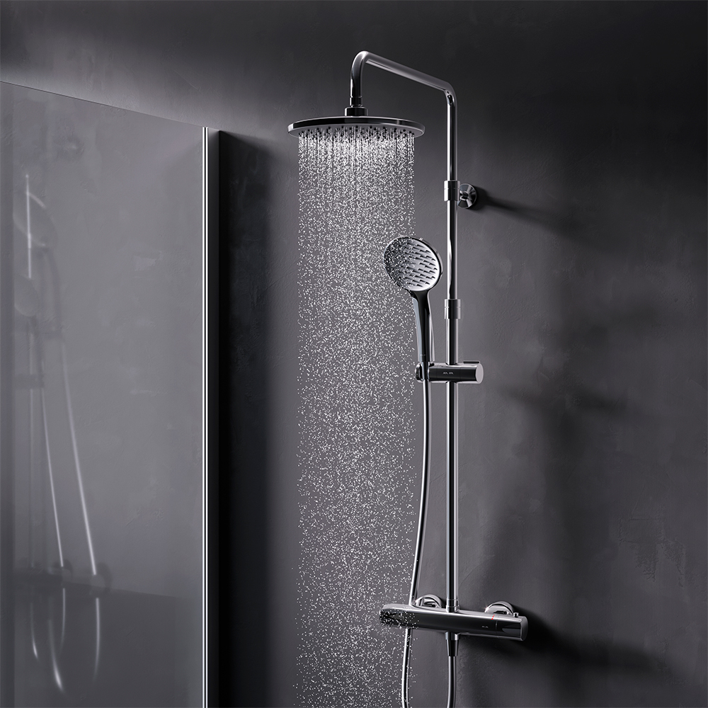 Продуманные детали для вашего удобства: телескопическая поворотная штанга регулируется по высоте в диапазоне от 880 до 1270 мм, обеспечивая комфорт для людей любого роста, а шаровой шарнир в держателе верхнего душа позволяет регулировать угол его наклона. Увеличенный диаметр душевых леек позволит ощутить все преимущества тропического душа, тогда как увеличенная длина шланга 1750 мм обеспечит свободу движений во время принятия душа. Смеситель разработан так, чтобы его использование было интуитивно понятным и не требовало никаких усилий. 3 режима ручного душа: Spray, EnerJet, Spray + Massage.