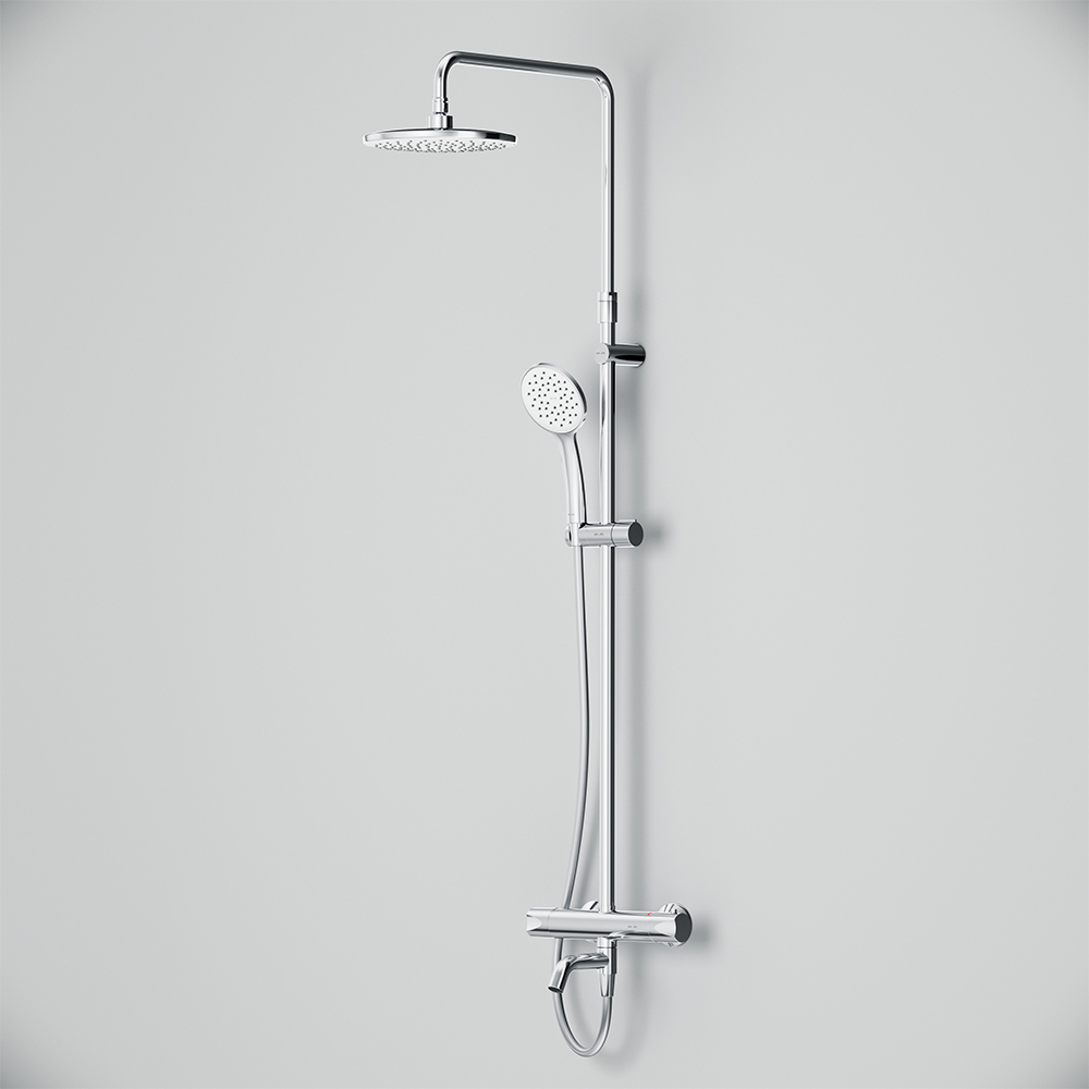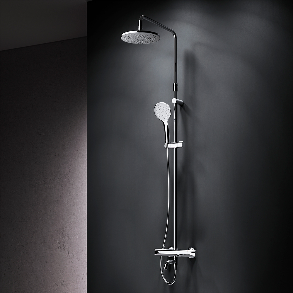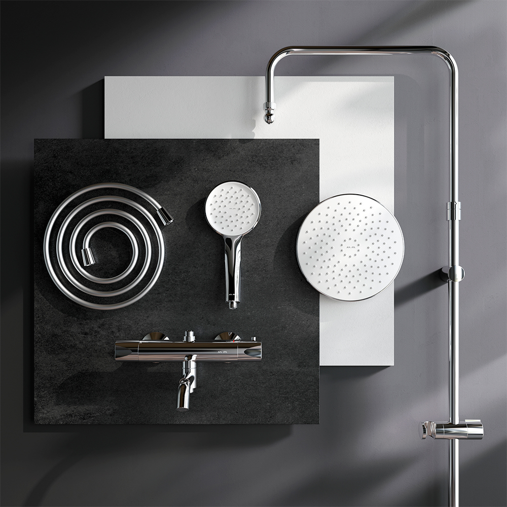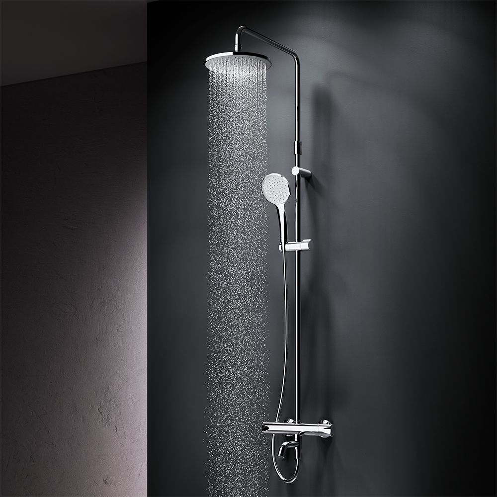Продуманные детали для вашего удобства: телескопическая поворотная штанга регулируется по высоте в диапазоне от 880 до 1270 мм, обеспечивая комфорт для людей любого роста, а шаровой шарнир в держателе верхнего душа позволяет регулировать угол его наклона. Увеличенный диаметр душевых леек позволит ощутить все преимущества тропического душа, тогда как увеличенная длина шланга 1750 мм обеспечит свободу движений во время принятия душа. Смеситель разработан так, чтобы его использование было интуитивно понятным и не требовало никаких усилий. 3 режима ручного душа: Spray, EnerJet, Spray + Massage.