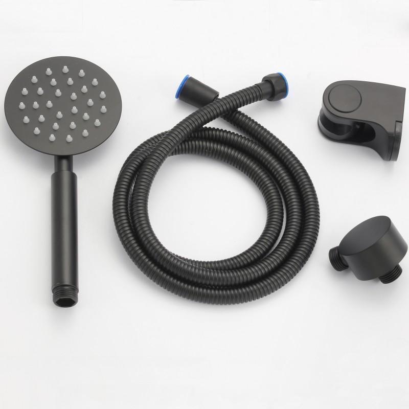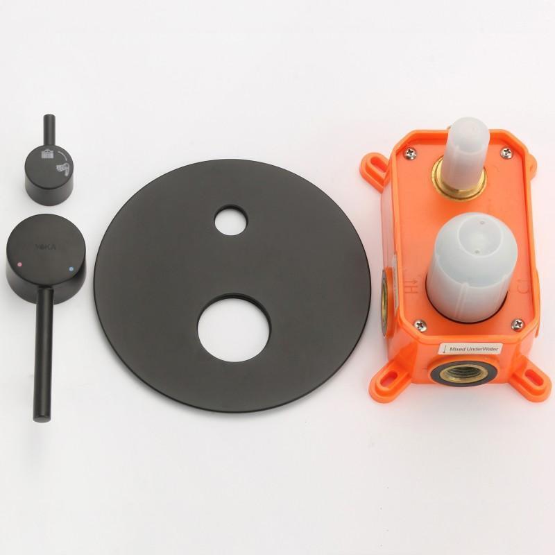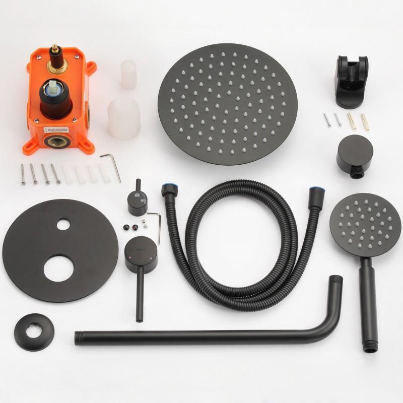 Современный душевой набор скрытого монтажа с тропическим душем и ручным душем черного матового цвета. Включает в себя механический смеситель скрытого монтажа со смесителем воды и механическим переключателем струи воды, дождевой душ/ручную трубку. В комплект входит монтажная коробка для подключения воды заподлицо, которая позволяет точно установить внешнюю панель на керамическую плитку. Дизайн набора соответствует последним тенденциям – он выглядит очень элегантно и прекрасно вписывается в современную ванную комнату.