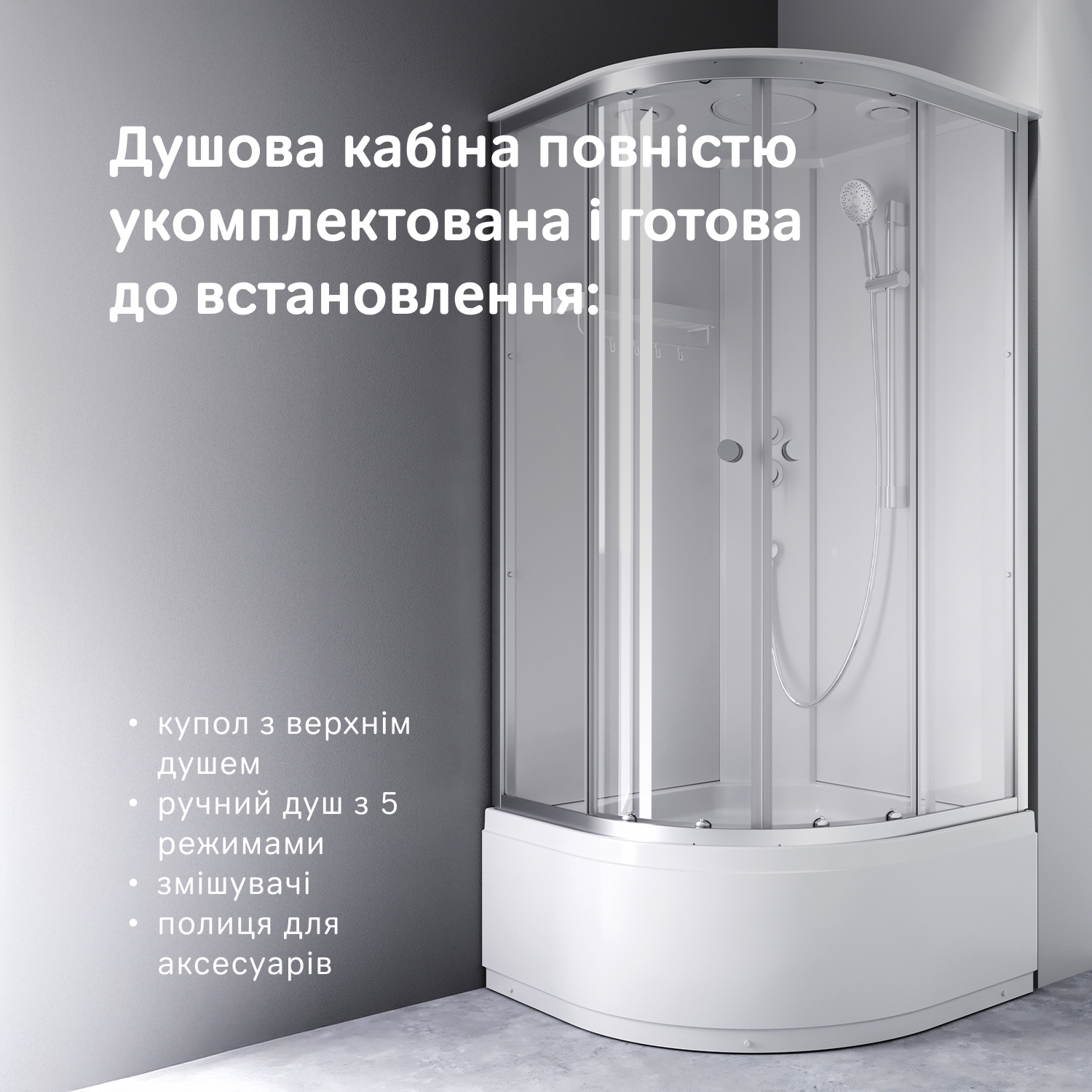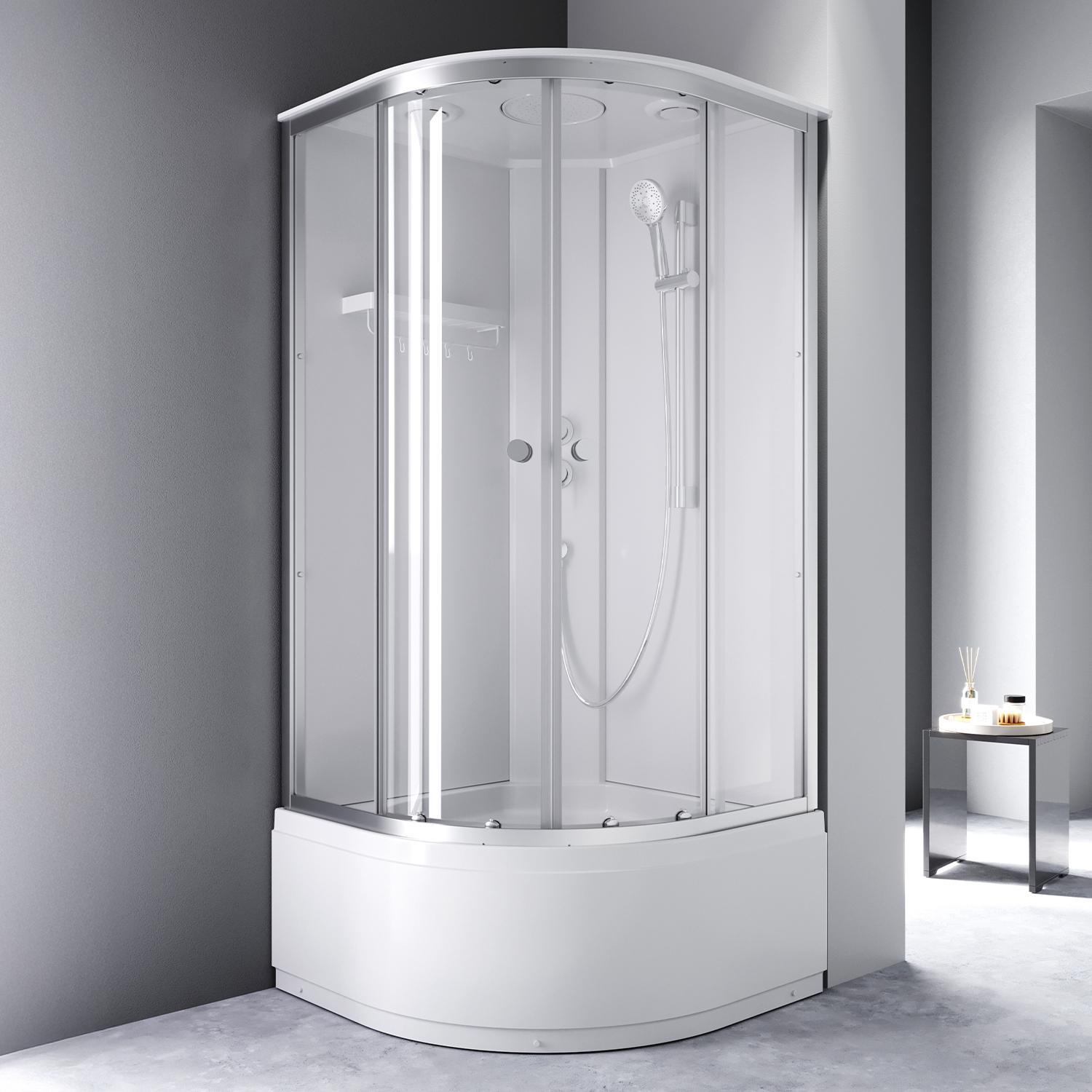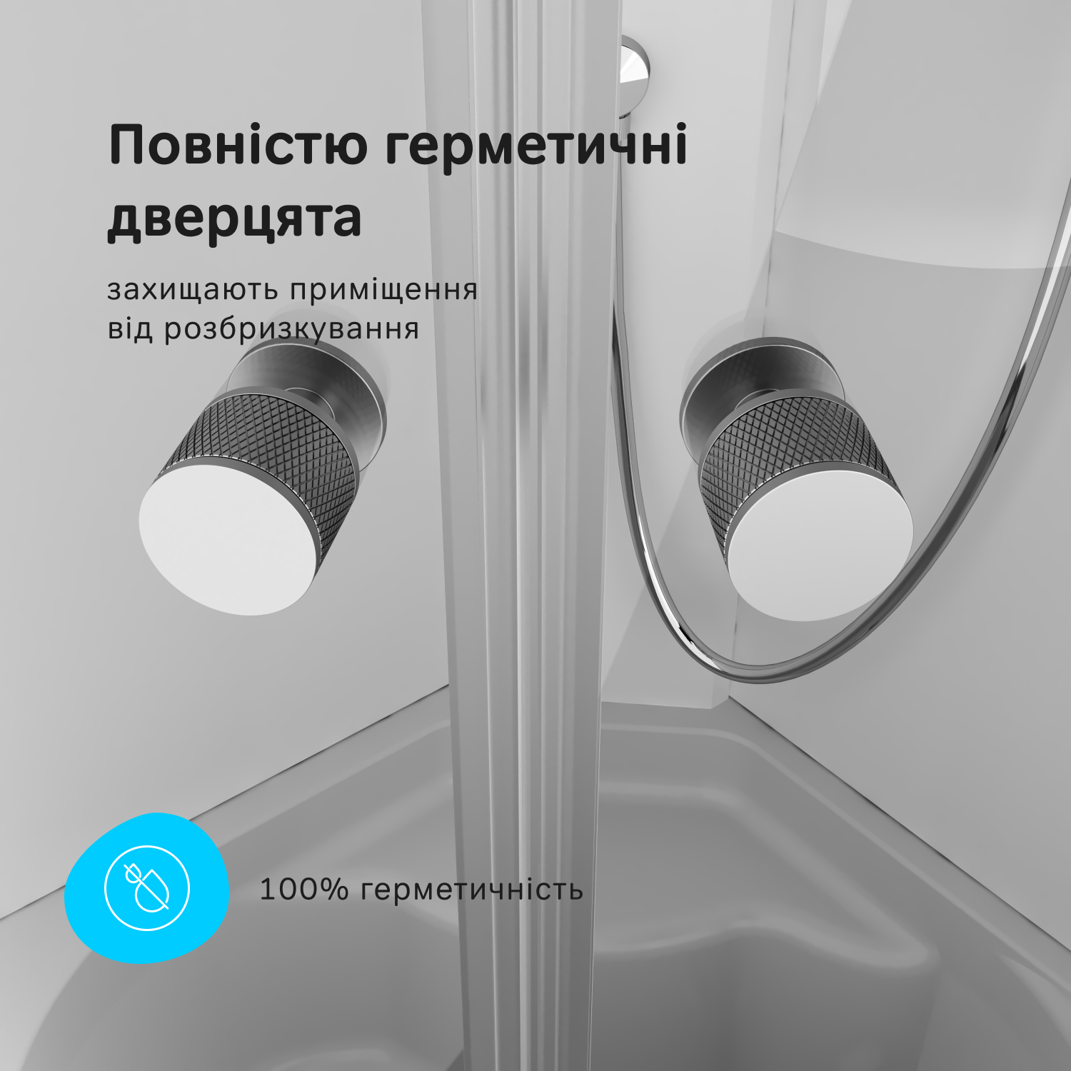 Одинарные ролики обеспечивают легкое и бесшумное открывание. Кабина оснащена 5-режимным ручным душем, стильным смесителем и компактной полкой, на которой разместится все необходимое. Герметичная конструкция защищает помещение от брызг воды.