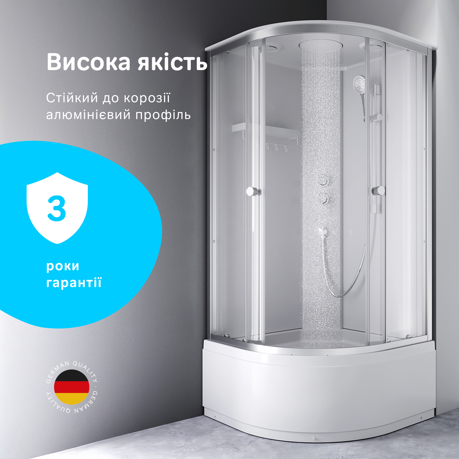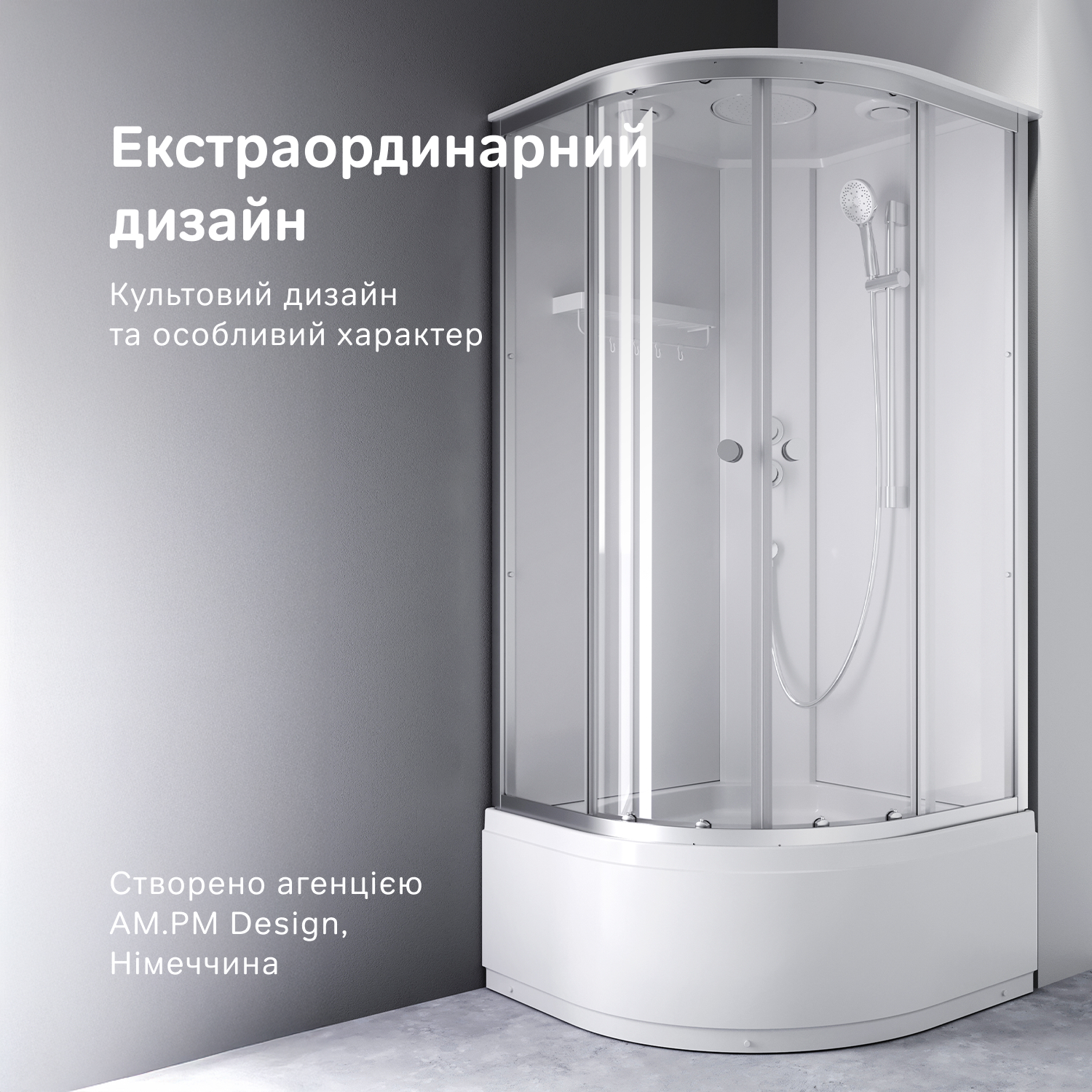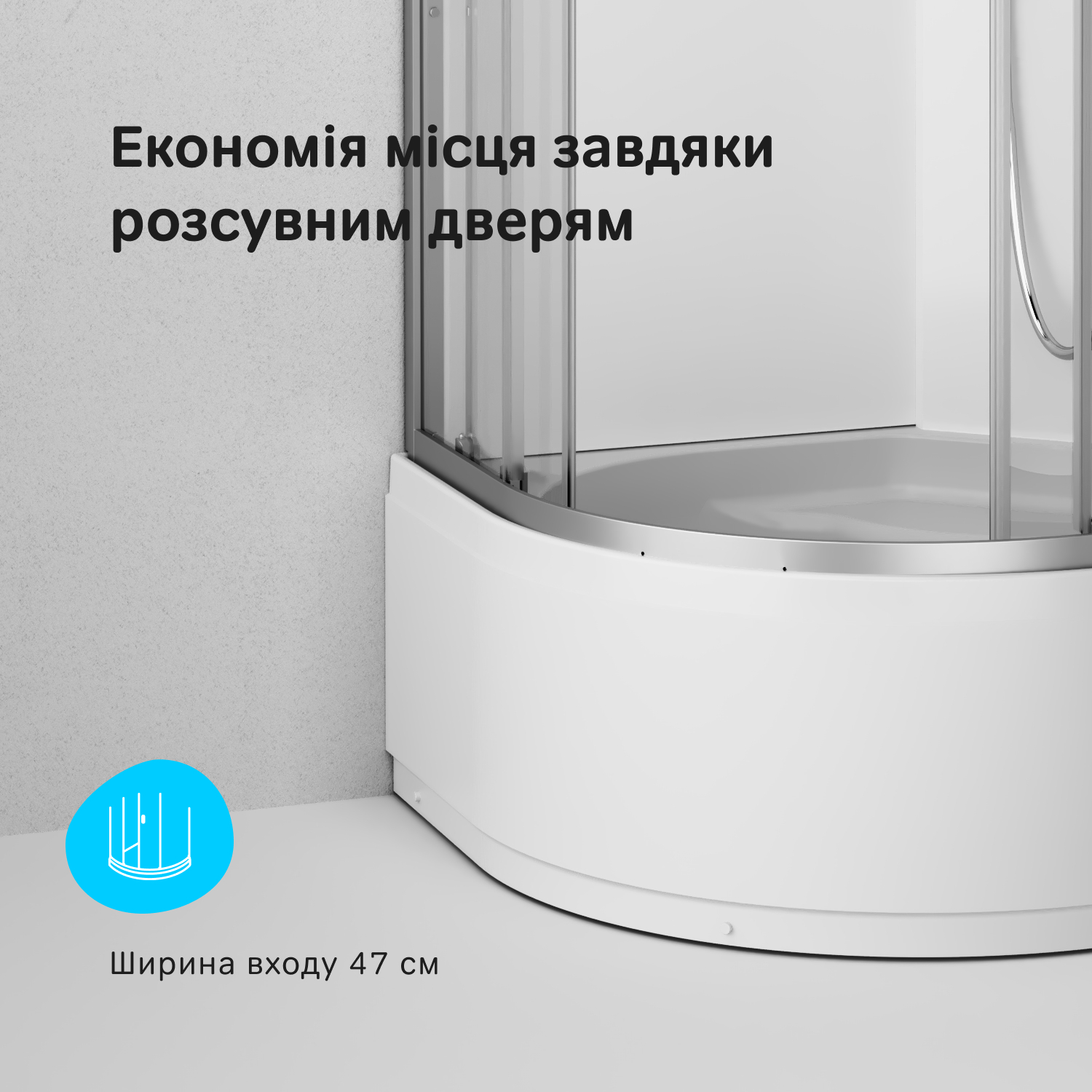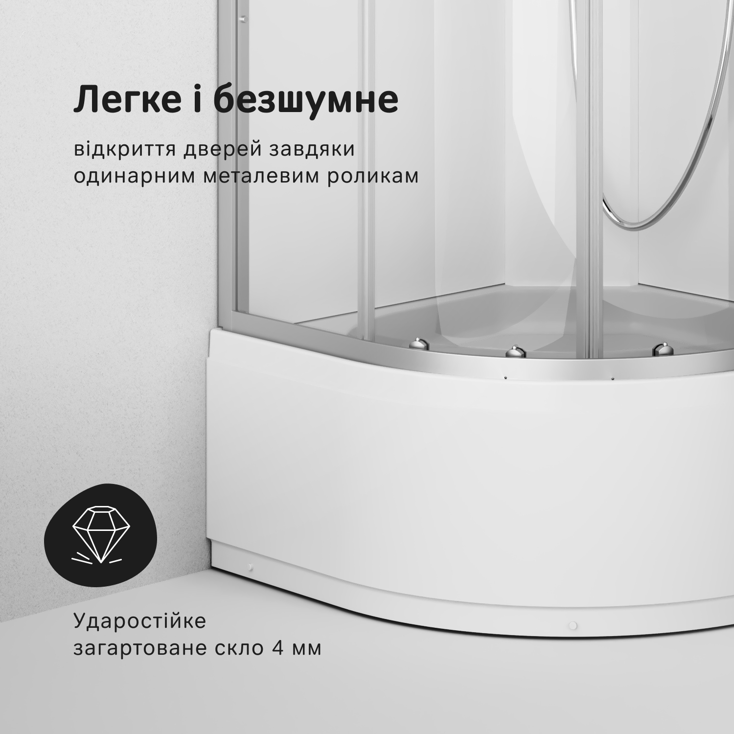 Одинарные ролики обеспечивают легкое и бесшумное открывание. Кабина оснащена 5-режимным ручным душем, стильным смесителем и компактной полкой, на которой разместится все необходимое. Герметичная конструкция защищает помещение от брызг воды.