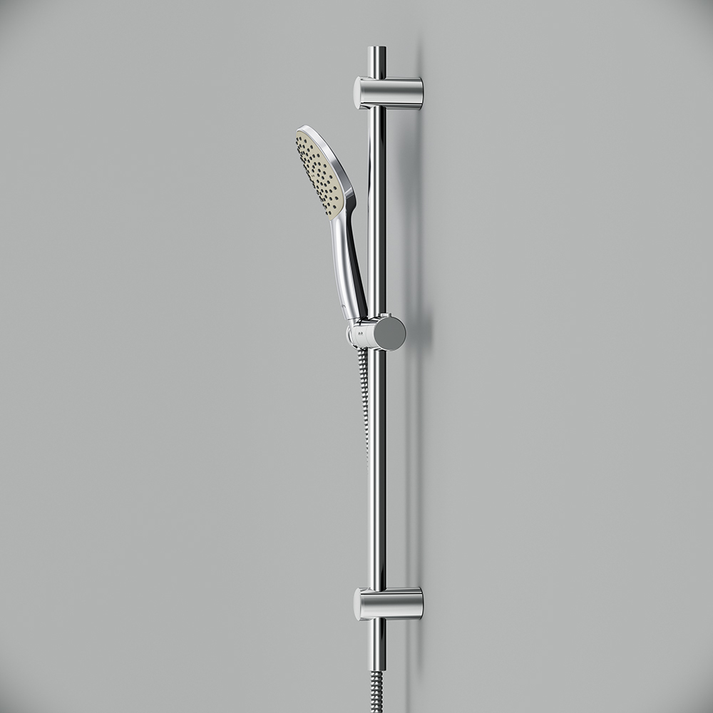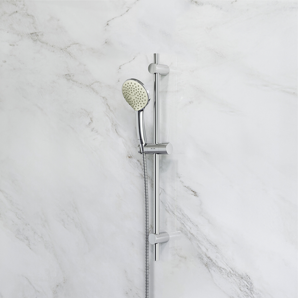 Продуманные детали для удобства использования: шарнирное соединение защищает душевой шланг от перекручивания, регулируемый в трех плоскостях держатель ручного душа, функция Rub&Clean для легкой очистки душевых форсунок.