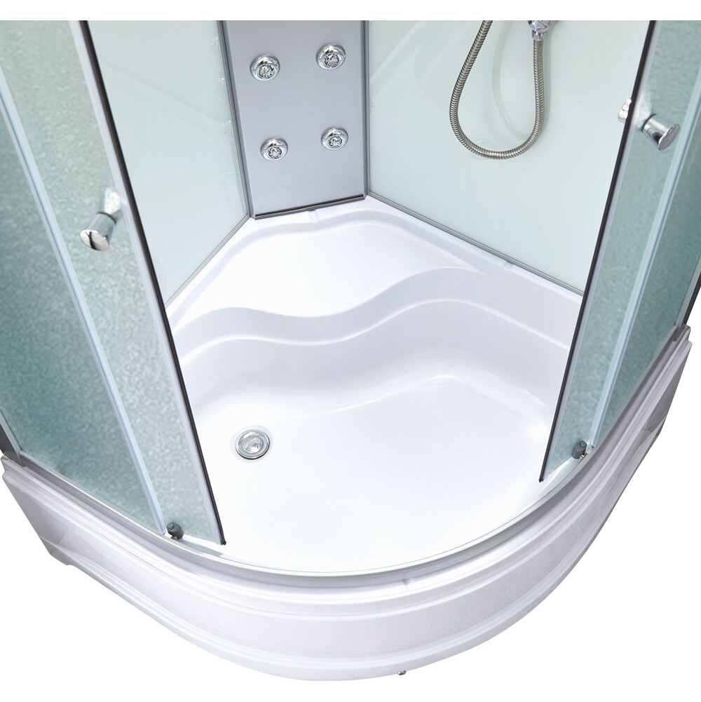 Гидромассажный бокс Lidz Tani SBM90x90.SAT.HIGH.FR Frost является удачной альтернативой ванны для современного санузла. Угловая конструкция бокса позволит комплексно решить вопрос душевых процедур и сэкономить пространство. Бокс состоит из стеклянных дверей, акрилового поддона, стеклянных задних стенок и крышки, ручного и верхнего душа и удобной полки. Функция гидромассажа сделает водные процедуры еще приятнее.