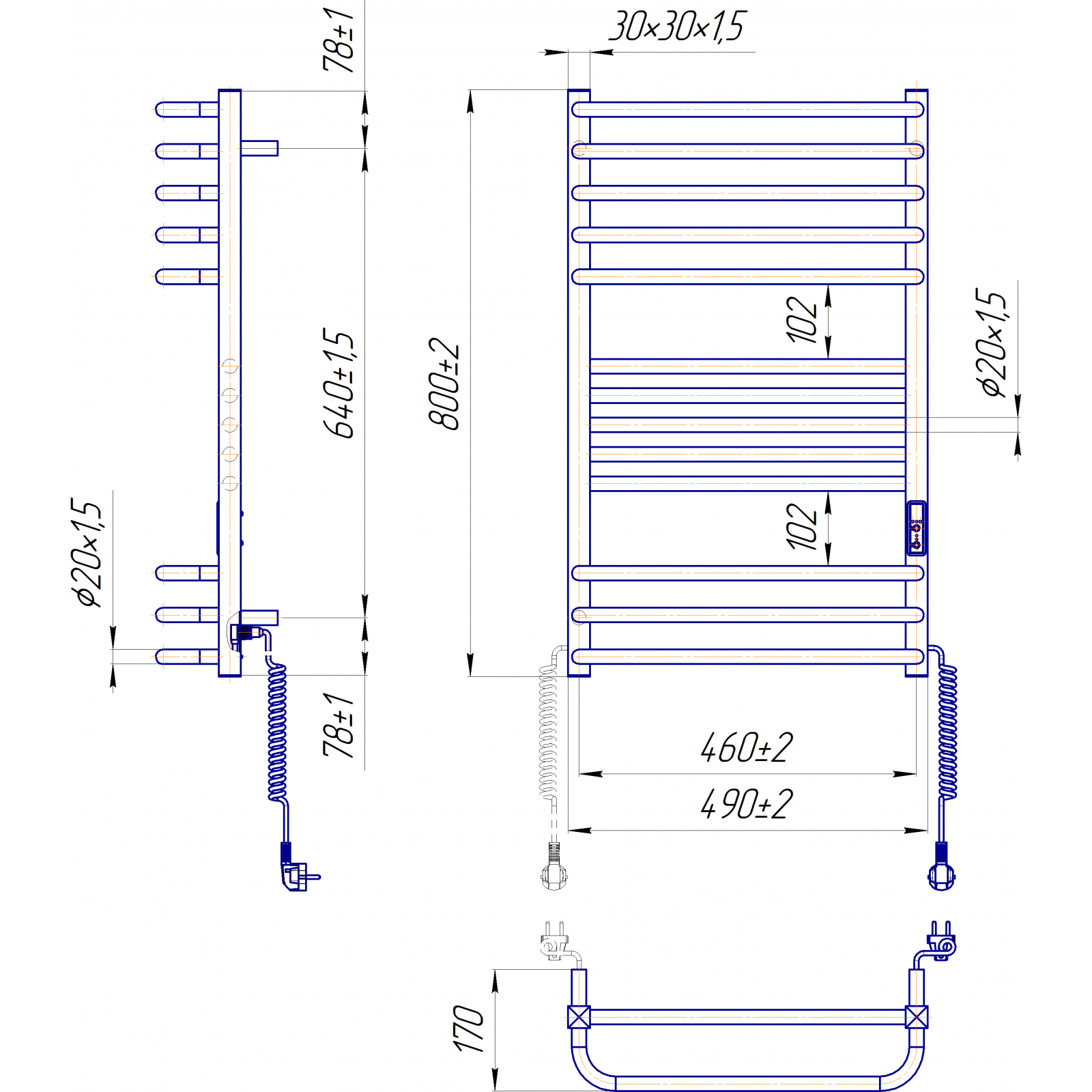 Электросушилка для полотенец бытовая Гера-Люкс-I 800х500/170 TR