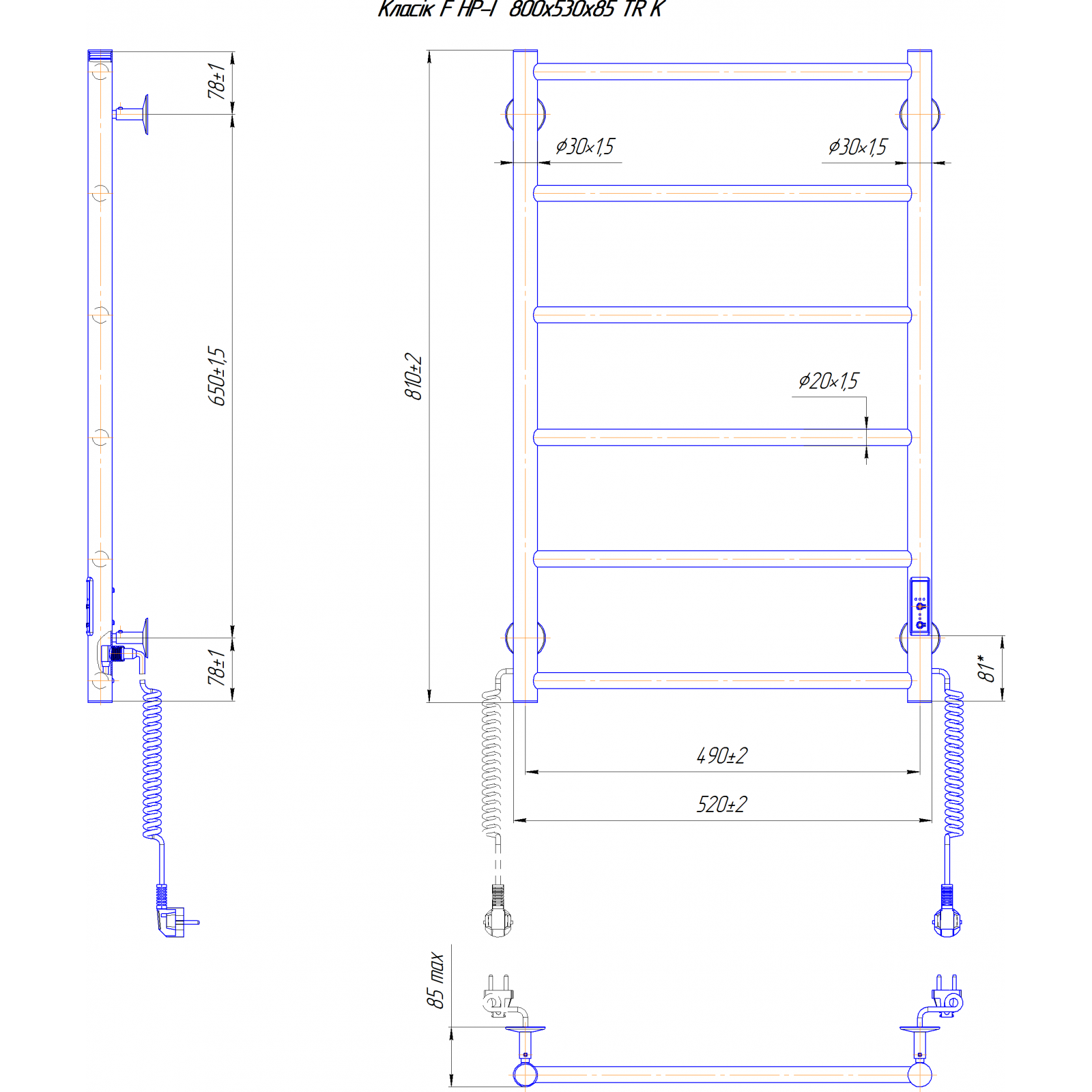 Электросушилка для полотенец бытовая Классик F НР-I 800х530/75 TR K.