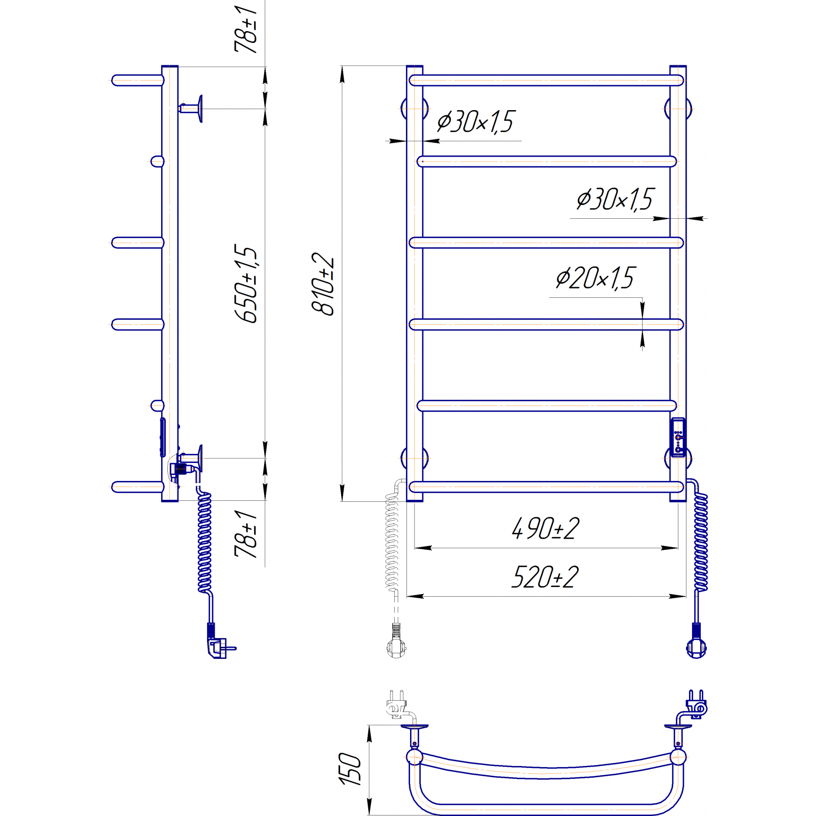Электросушилка для полотенец бытовая Люкс НР-І 800х530/150 TR К.