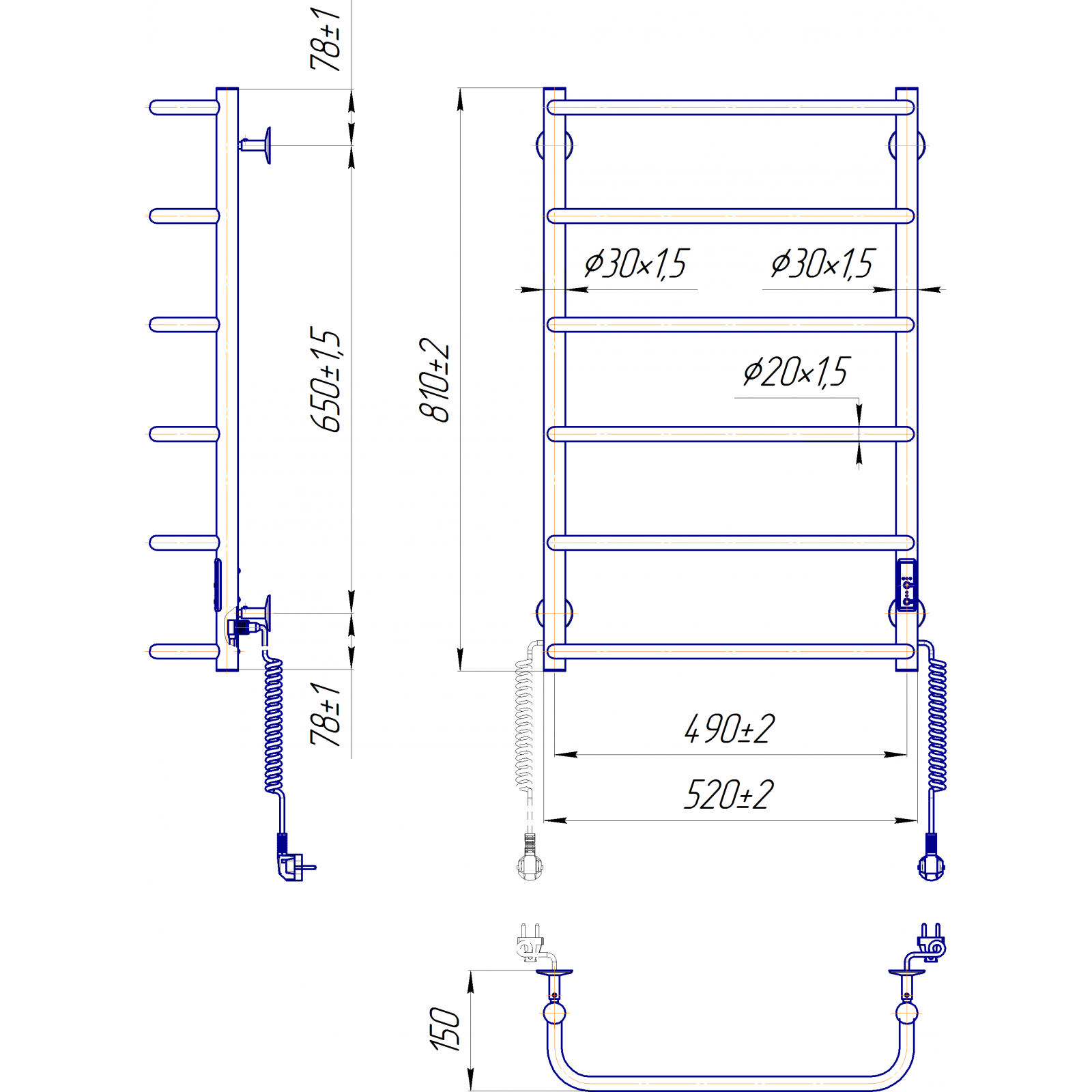 Электросушилка для полотенец бытовая Стандарт НР-І 800х530/150 TR К.