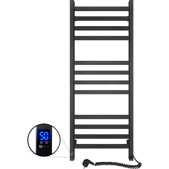Полотенцесушитель Авангард 480х1200 Sensor (расположение шнура с вилкой — справа; цвет — черный муар) от украинского производителя NAVIN изготовлен из углеродной стали, которая отличается высоким качеством и прочностью. Модель имеет надежное порошковое покрытие. Толщина стенок боковых коллекторов (стоек) и перемычек сушилки составляет 1,5 мм.