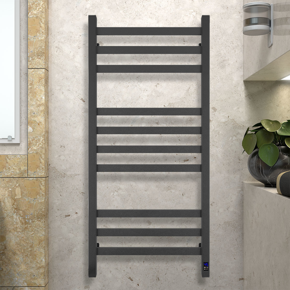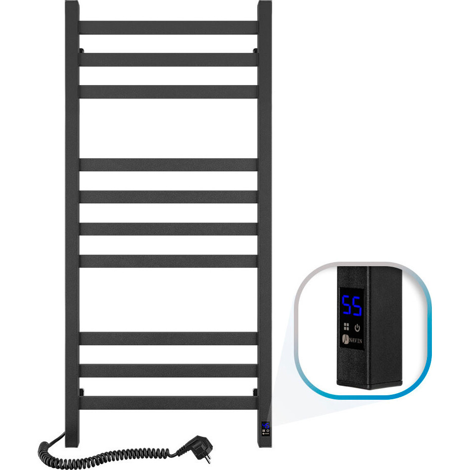 Полотенцесушитель Авангард 480х1000 Sensor (расположение шнура с вилкой — слева; цвет — черный муар) от украинского производителя NAVIN изготовлен из углеродной стали, которая отличается высоким качеством и прочностью. Модель имеет надежное порошковое покрытие. Толщина стенок боковых коллекторов (стоек) и перемычек сушилки составляет 1,5 мм.
